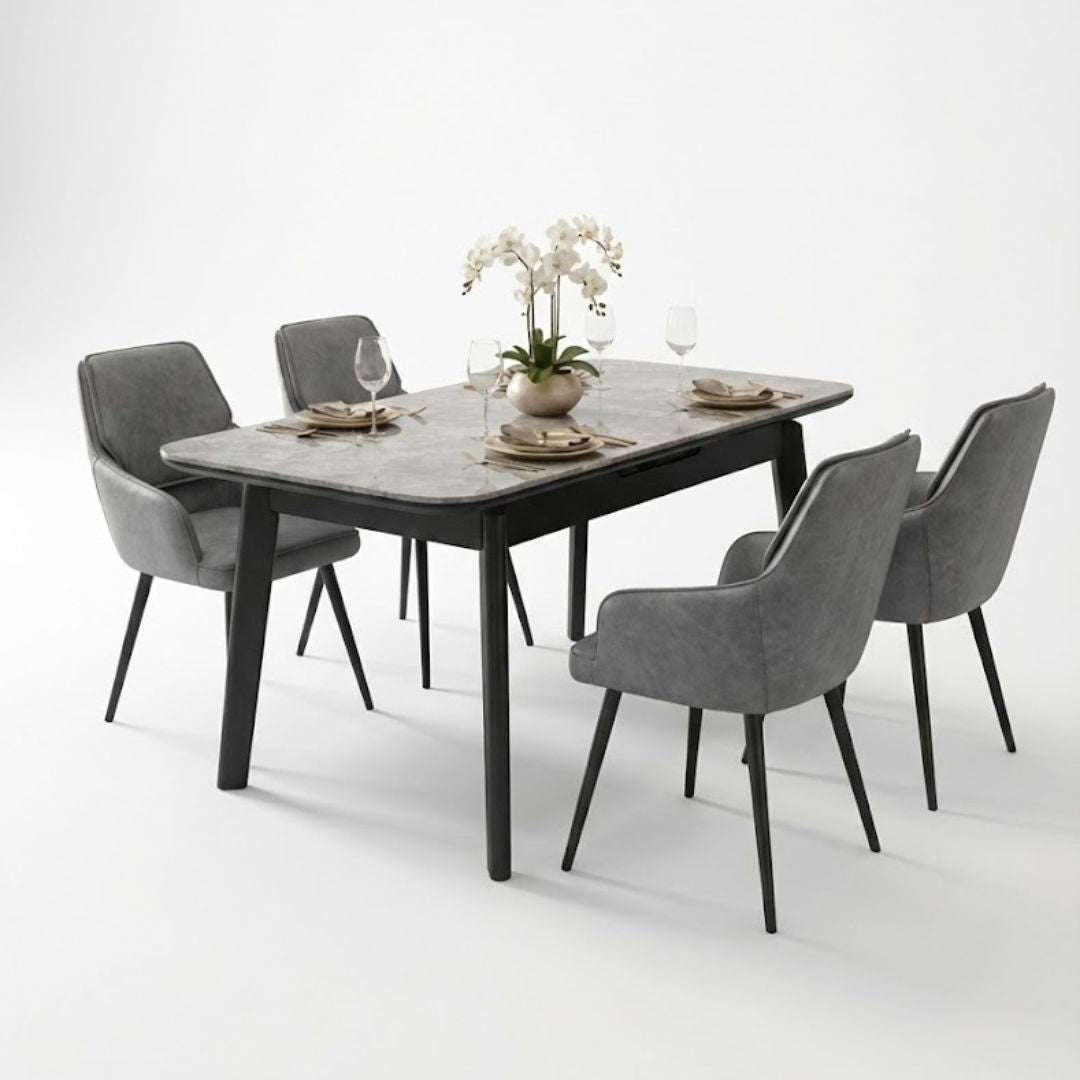 Complete Set: Includes 1 extending table and 4 matching grey armchairs.