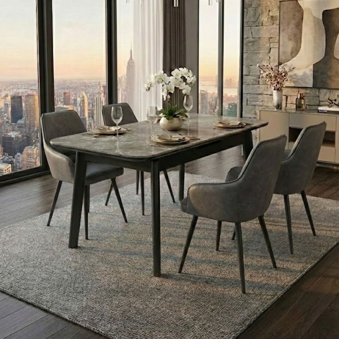 Create a sophisticated dining area that stands up to everyday life with the Arizona Extending Dining Set. Ideally sized for modern apartments and compact spaces, the Arizona Table features a premium grey ceramic top with a stylish stone effect. This durable surface is heat, scratch, and stain-resistant, and extends effortlessly from 130cm to 160cm to accommodate guests.