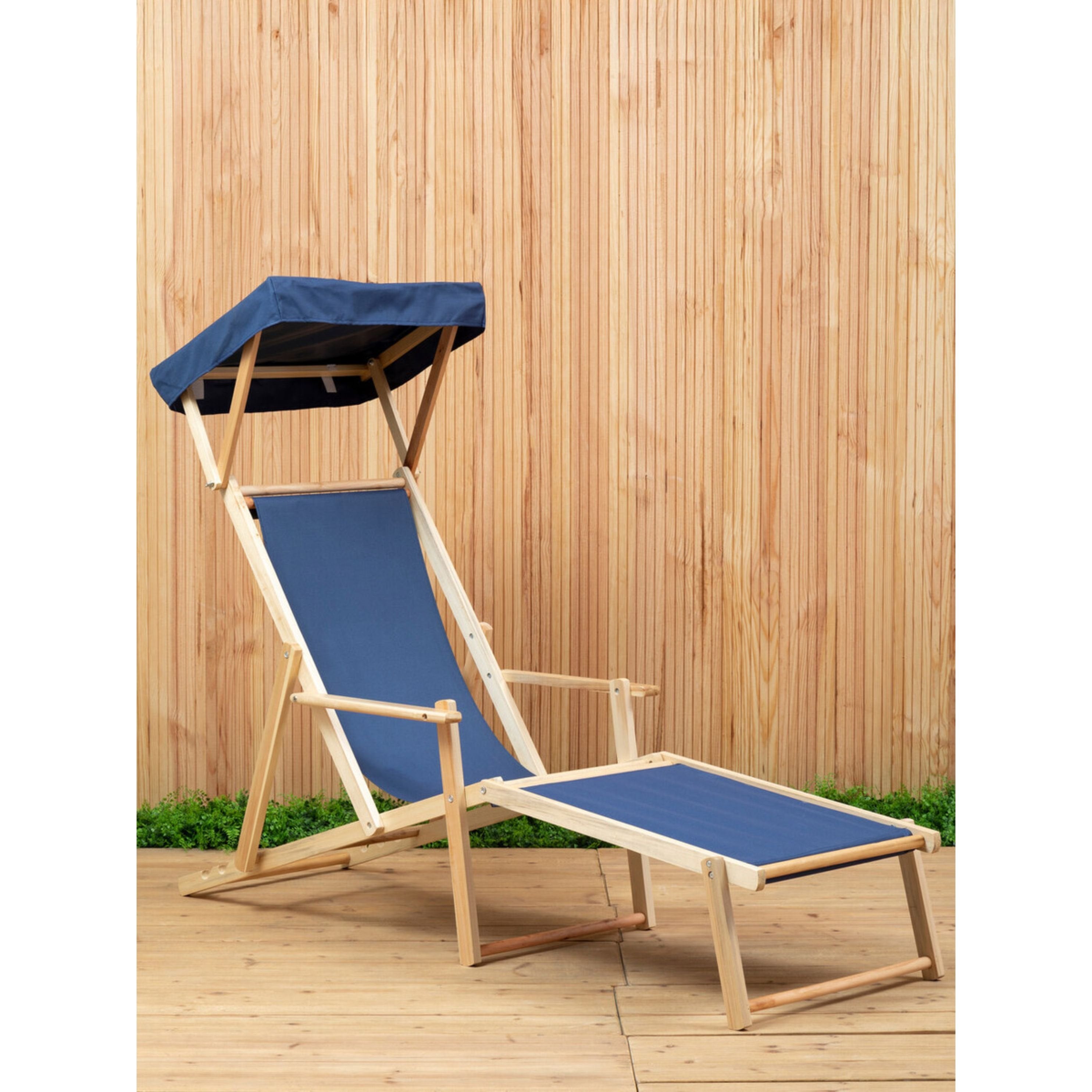 Enjoy the sunshine in complete comfort with the Beauport Blue Lounger. Crafted from sturdy solid wood (Chinese Poplar) with a classic natural finish, this traditional deck chair adds a touch of seaside charm to your garden, patio, or balcony.