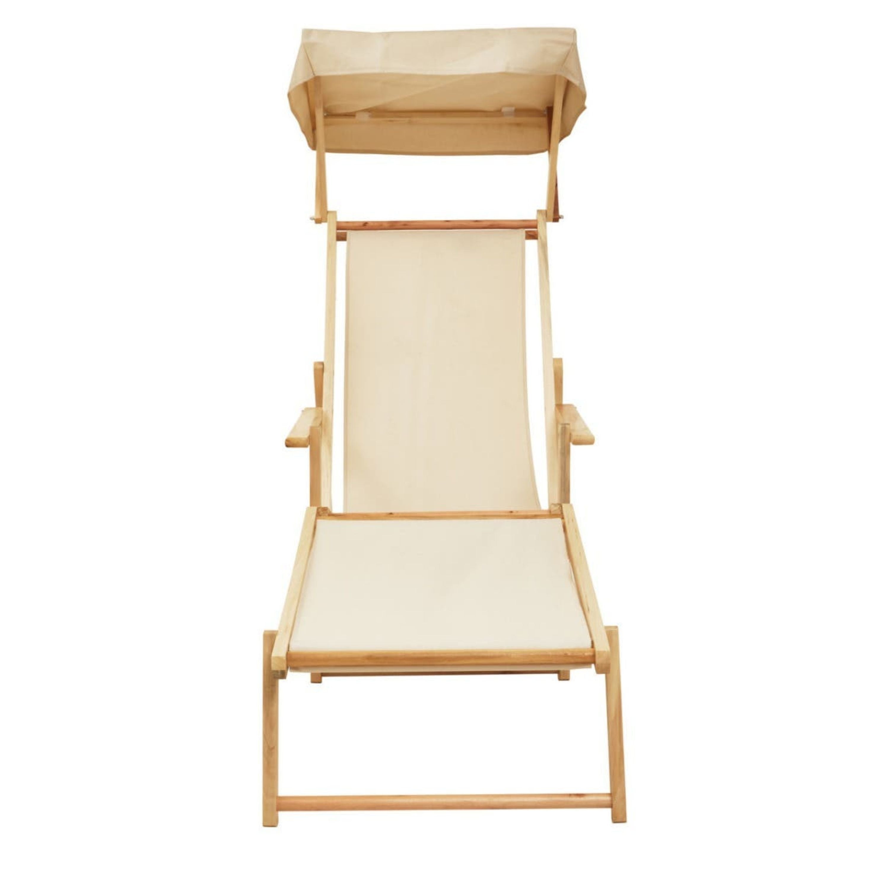 Designed for ultimate relaxation, it features an adjustable backrest so you can find your perfect reclining position. The standout feature is the integrated sun canopy, providing essential shade for your face while you read or nap. Upholstered in durable, weather-resistant cream fabric, this lounger is sturdy, easy to clean, and built to withstand outdoor conditions.