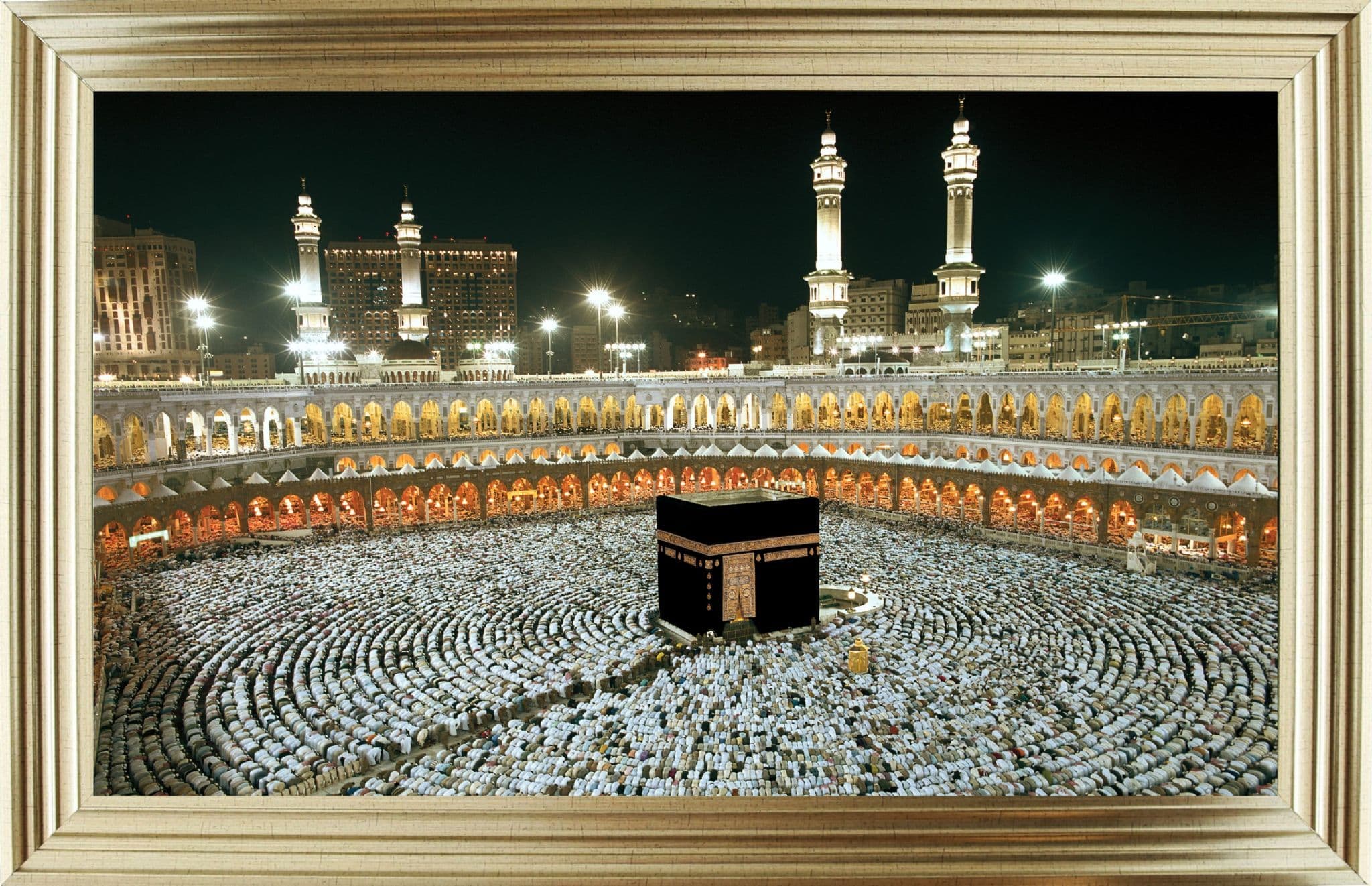 Bring a sense of profound peace and majesty into your home with our stunning framed art print, "Arabic Art, The Kaaba at Night." This breathtaking image captures the heart of Islam, the Kaaba, at the center of the Grand Mosque in Mecca, filled with countless worshippers in devotion. The grand architecture and warm lighting create an atmosphere of spiritual serenity and beauty, making this a truly inspiring and powerful piece of art for any space.