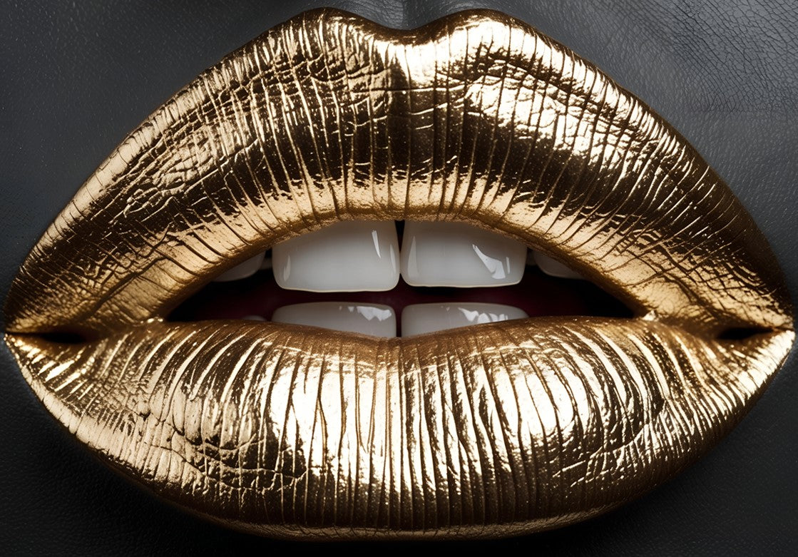 Bold Lip Art: Features a captivating close-up of lips with a luxurious gold texture.