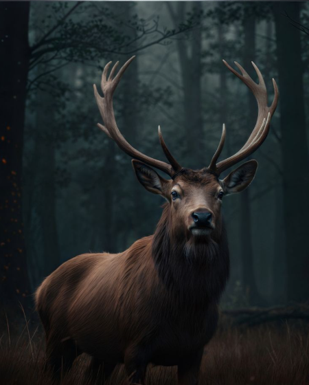 Striking Visuals: A high-quality print of a majestic stag against a dark, atmospheric woodland backdrop.