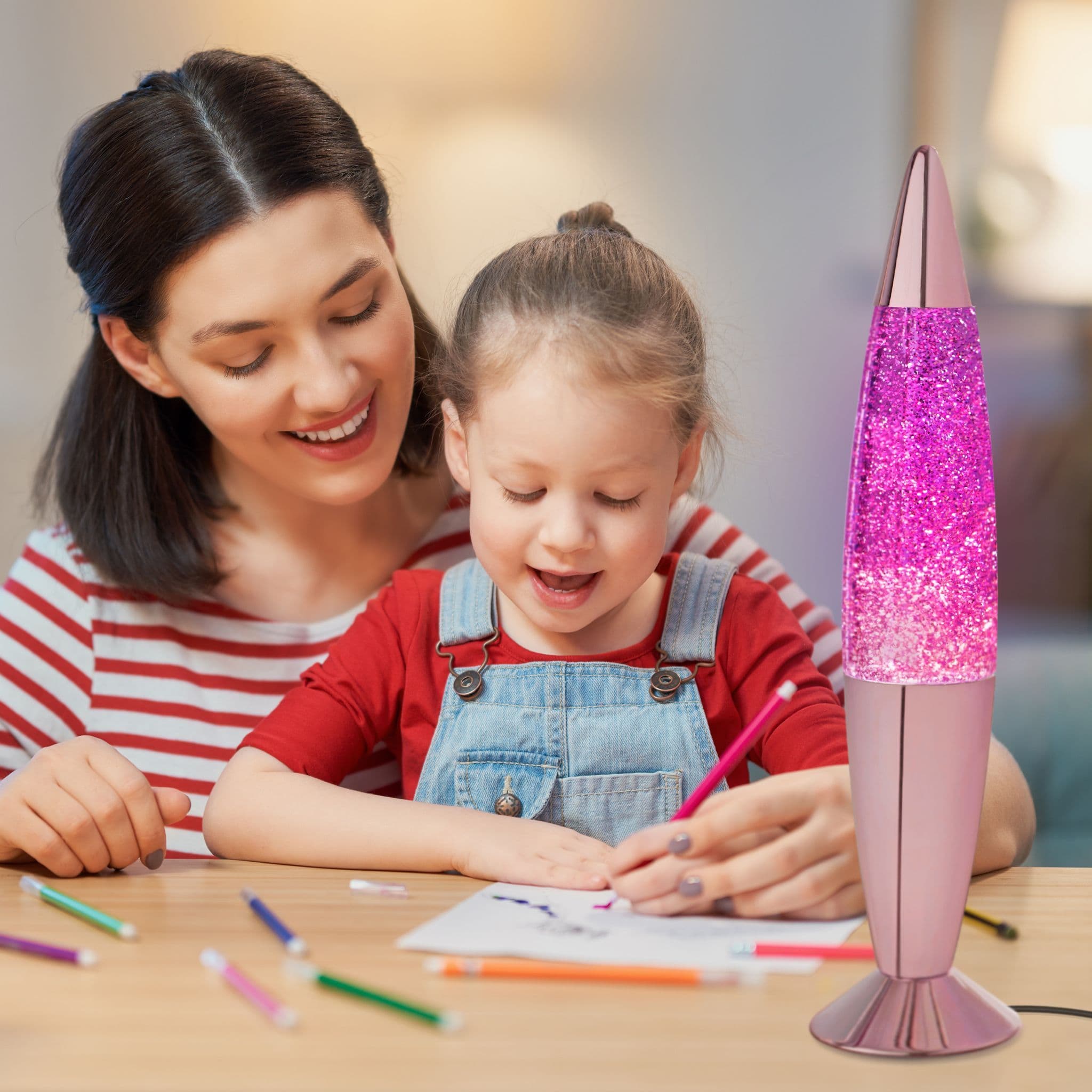 This glitter motion lamp is a fantastic novelty that creates a unique sensory experience for any room in your house, school, or workplace. Featuring a colourful glitter liquid which slowly floats around the lamp to offer a relaxing and soothing ambient mood. Watch the different glitter particles collide, flow, and split apart as they ooze their way up and down the glass globe