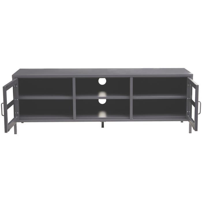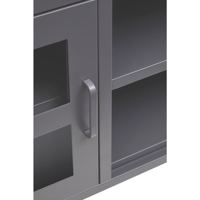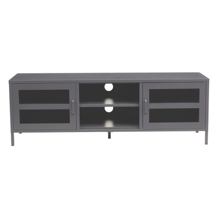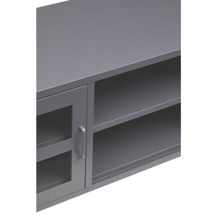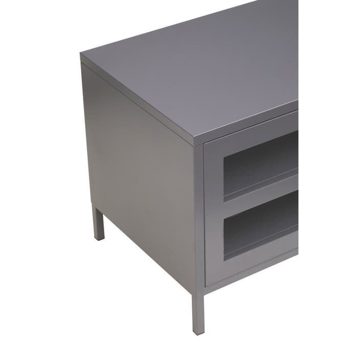 Elevate the look of your living room with the sleek and industrial charm of the Acier Two Door Grey Metal Media Unit from Home Luxe Interior. Designed to seamlessly blend with modern and industrial interiors, this media unit combines function with style. Featuring a durable grey powder-coated metal frame, glass doors, and open storage shelves, this media unit provides both practicality and an eye-catching design. Perfect for showcasing electronics and decorative items, it also includes rear openings for convenient wire management.