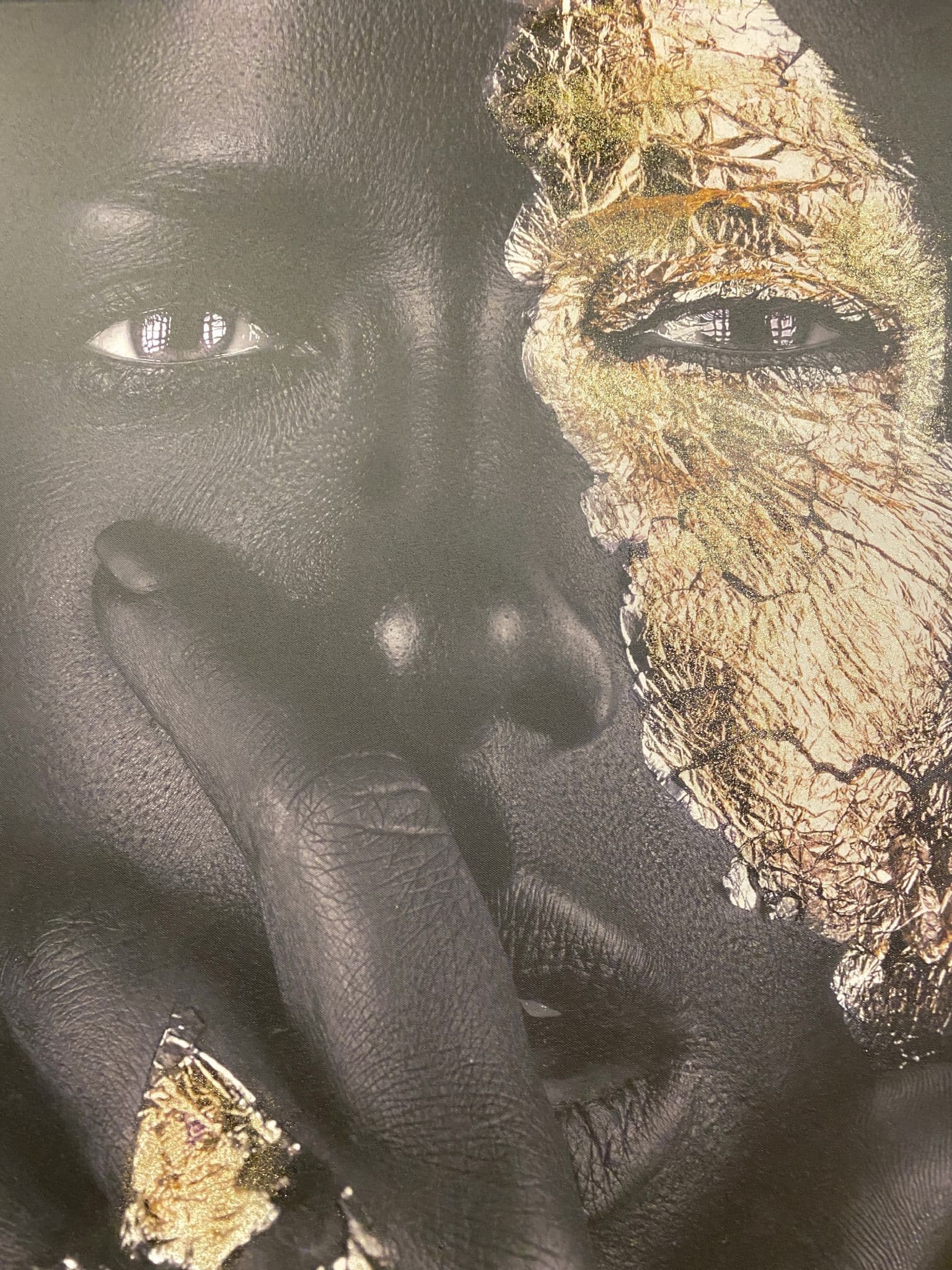 This picture is with a Luxury 'African Queen Black & Gold Face' that exhibits a rich design with golden details around the picture, creating a smart look for your home. Finished with a black frame.