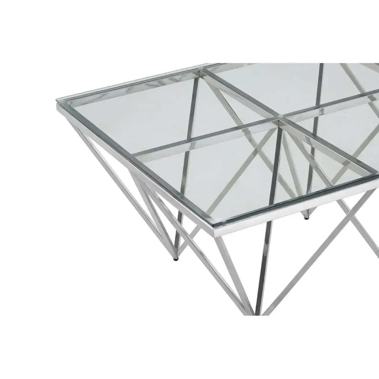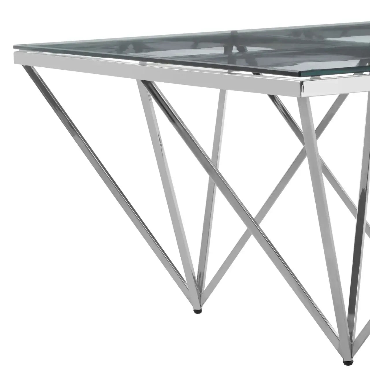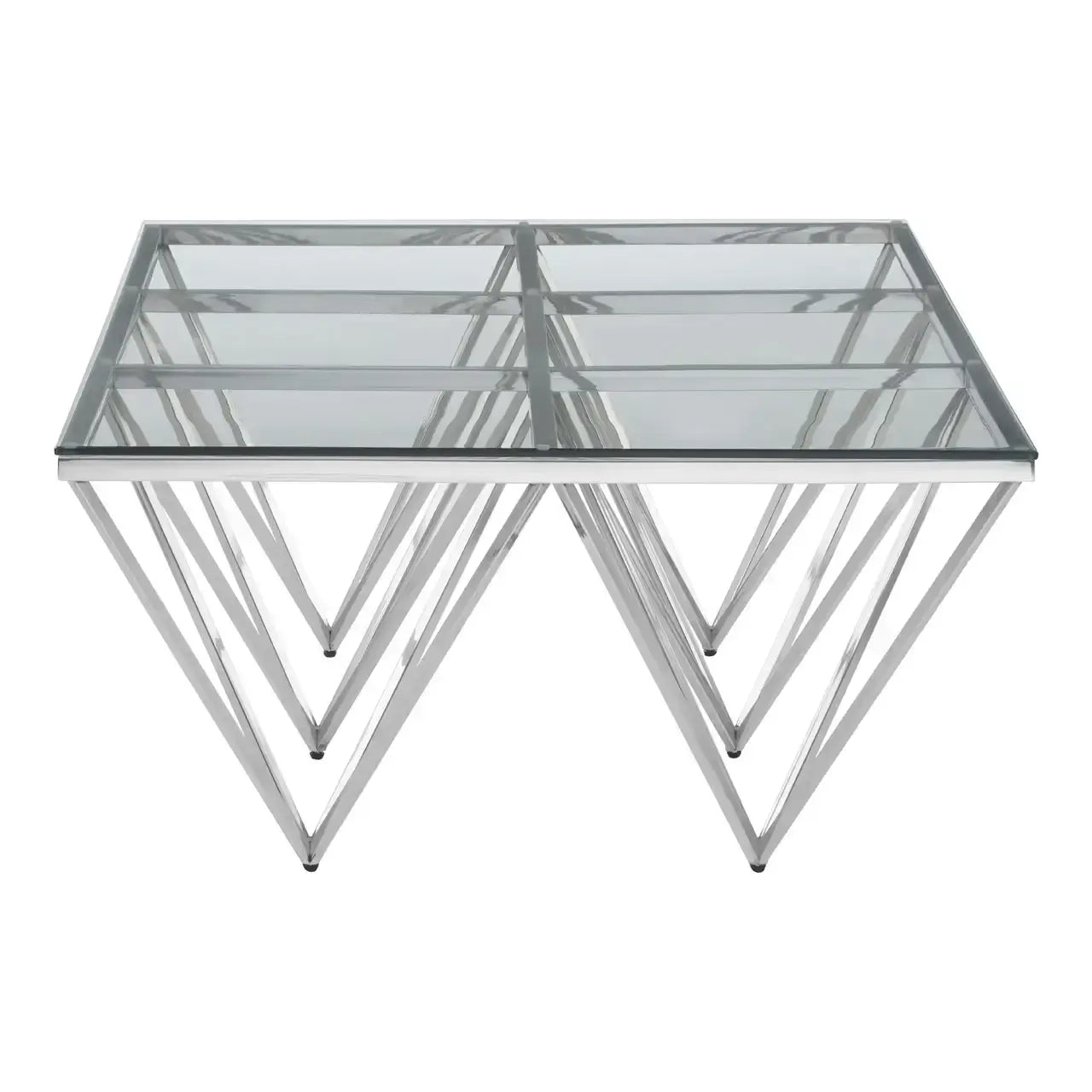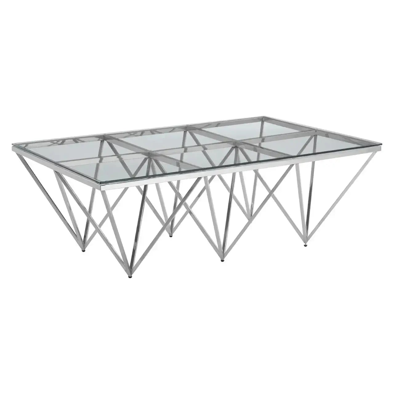 Bring a touch of modern luxury into your home with the Allure Prismatic Silver Base Coffee Table from Home Luxe Interior. Inspired by the glamorous art deco style, this coffee table exudes sophistication with its sleek lines and striking six-legged design. The pincer-like legs, crafted from reflective stainless steel, create a bold visual statement, perfectly complemented by the clear tempered glass top. Ideal for those who appreciate both beauty and functionality, this table enhances any space with its chic, contemporary appeal.