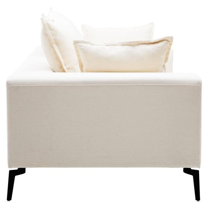 The Avignon 3 Seat Cream Sofa from Home Luxe Interior combines functional comfort with sleek, modern design. Upholstered in soft cream fabric, this spacious sofa features linear detailing that enhances its contemporary aesthetic. With a low back level with the armrests and supported by black metal legs, the Avignon is both stylish and practical, making it a perfect fit for any modern living space.