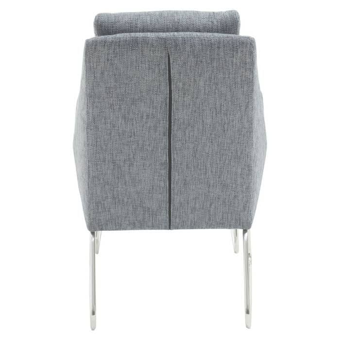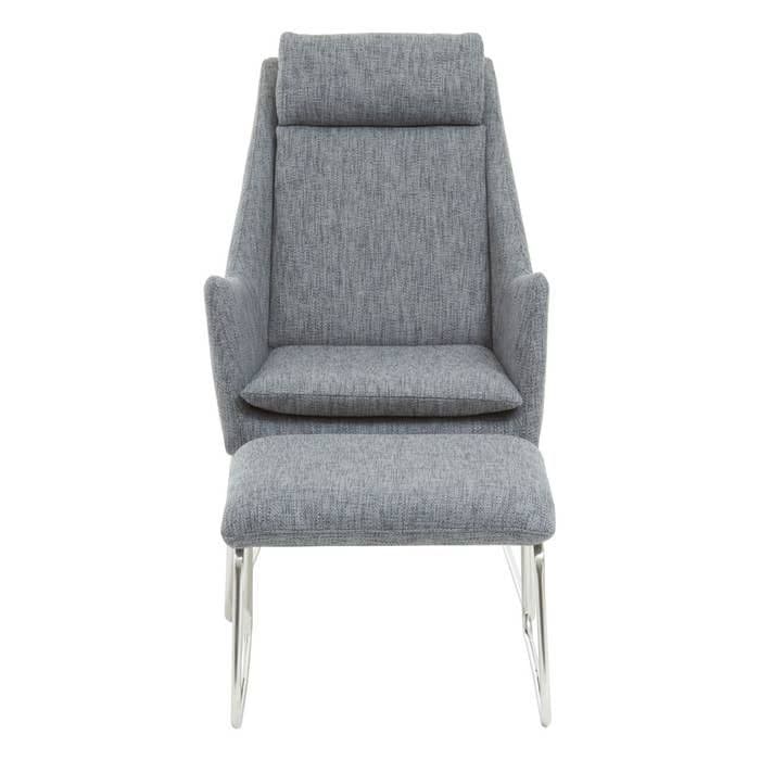 Unwind in style with the Azalea Grey Fabric Lounge Chair and Footstool Set. This luxurious set combines sleek, modern design with superior comfort. The chair features a foam-padded seat and angular profile, all upholstered in soft grey fabric. Perched on a durable stainless steel base, the chair is complemented by a matching footstool, offering the perfect place to relax after a long day.