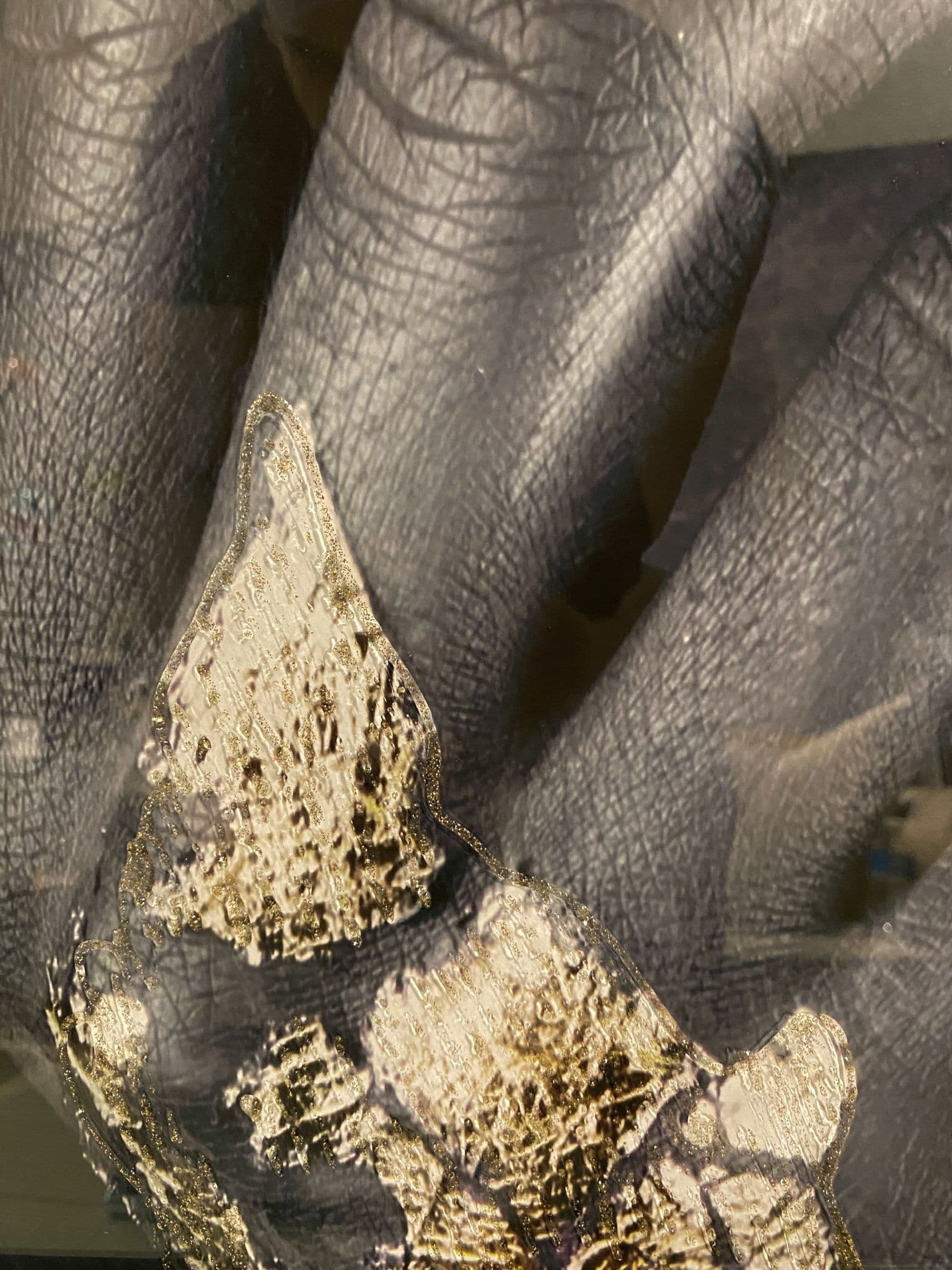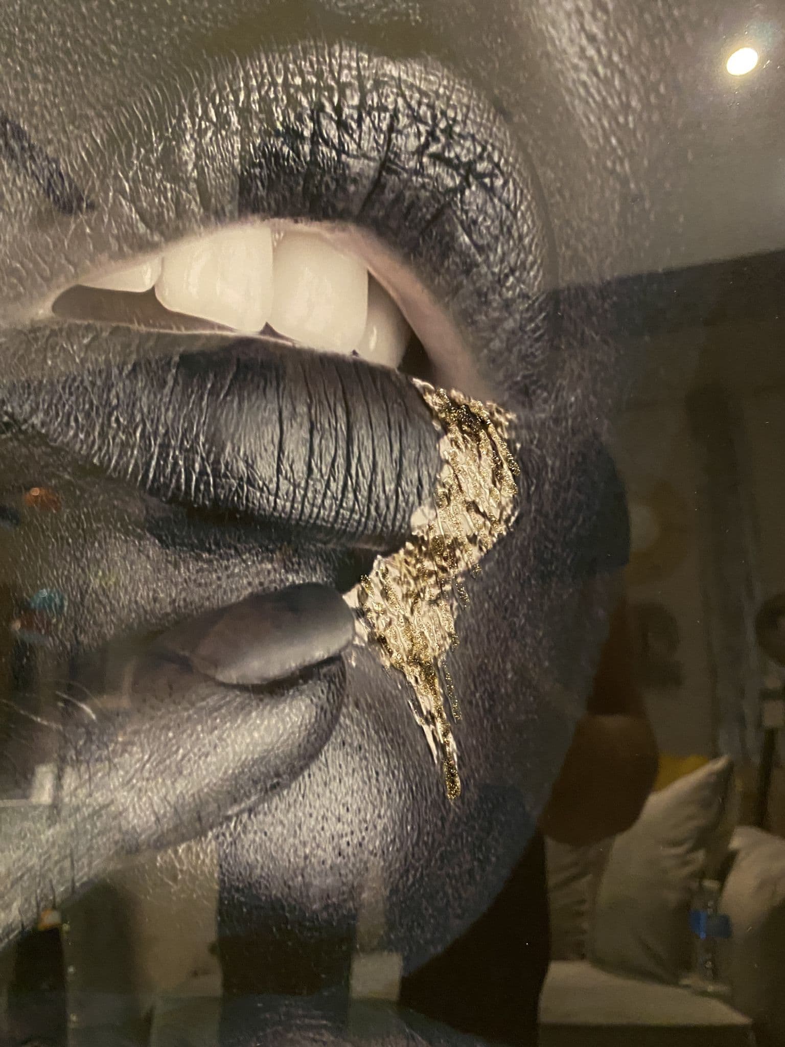This picture features a 'Black African Gold Paint' that exhibits a rich design with glitter details around the picture, creating a smart look for your home. Finished with a mirror frame.