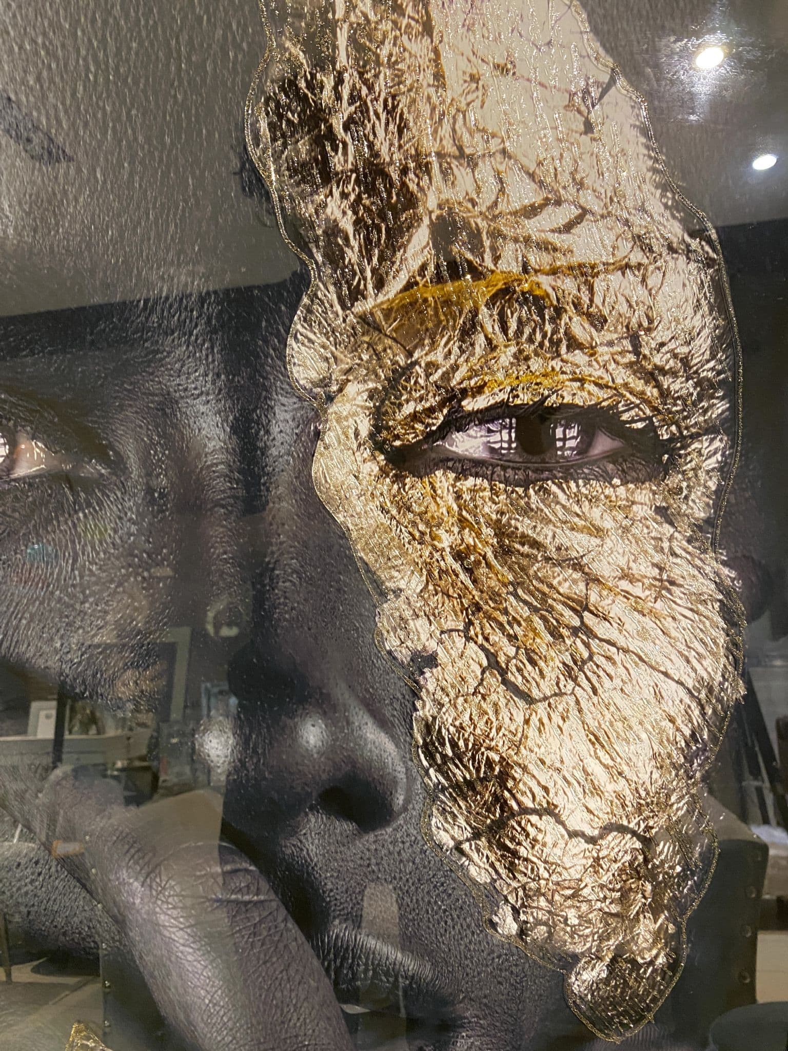 This picture features a 'Black African Hand Gold Paint' that exhibits a rich design with glitter details around the picture, creating a smart look for your home. Finished with a mirror frame.