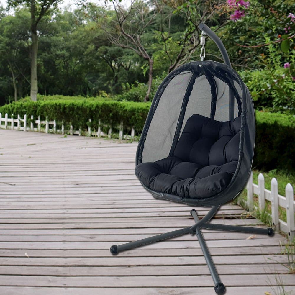 A nice way to relax comfortably in your garden with our Black Egg Chair made from strong Texeline weave. Supplied with a thick relaxing seat cushion to position where you like. Cushion is showerproof too. Easy to clean damp wipe naturally.