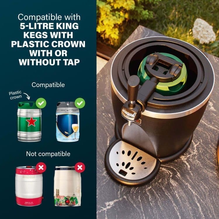 - Compatibility: Works with widely available 5-litre carbonated (King) kegs, sold separately.