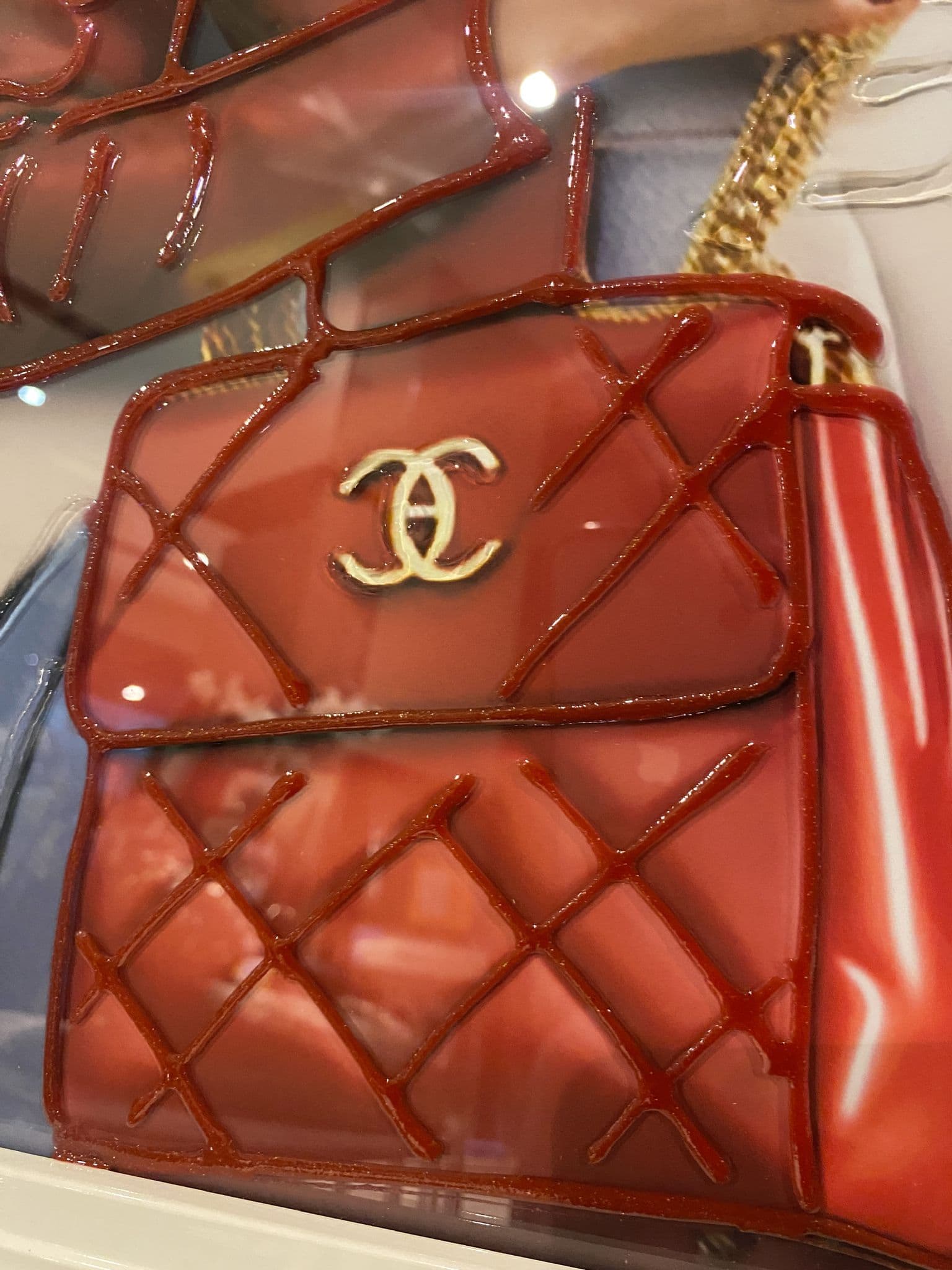 This picture features 'Chanel Lady Fashion Bag', exhibiting a rich design with liquid details around the picture, creating a smart look for your home. Finished with a White Step Frame.