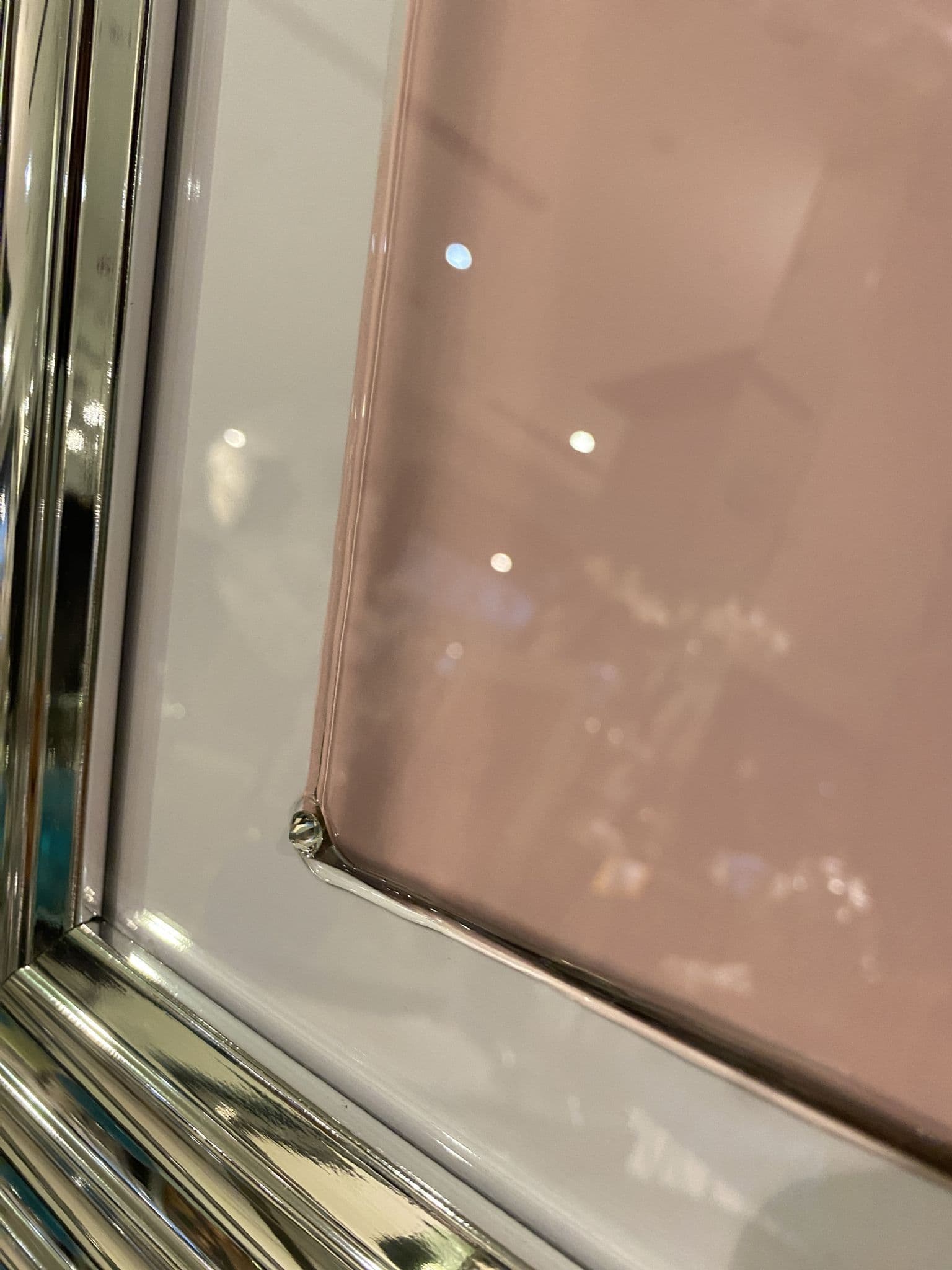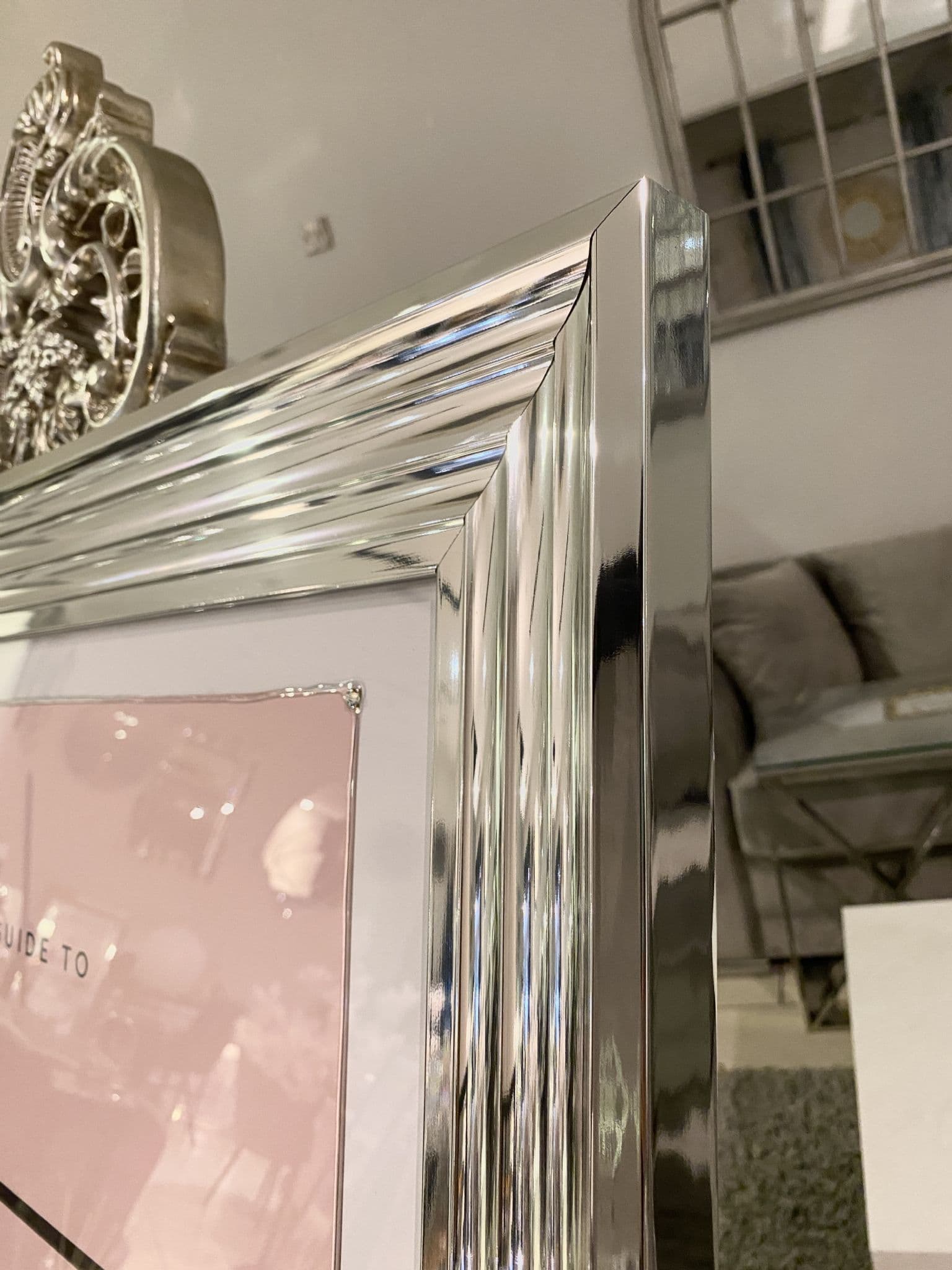 This picture features 'Coco Chanel Pink', exhibiting a rich design with liquid details around the picture, creating a smart look for your home. Finished with a Chrome Step Frame.