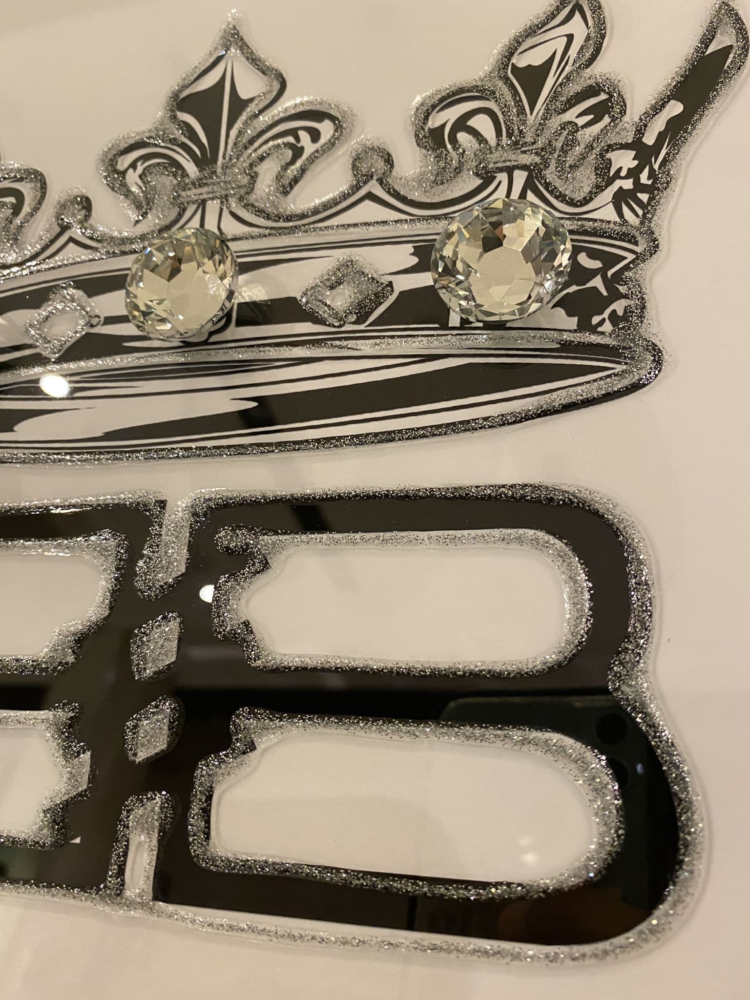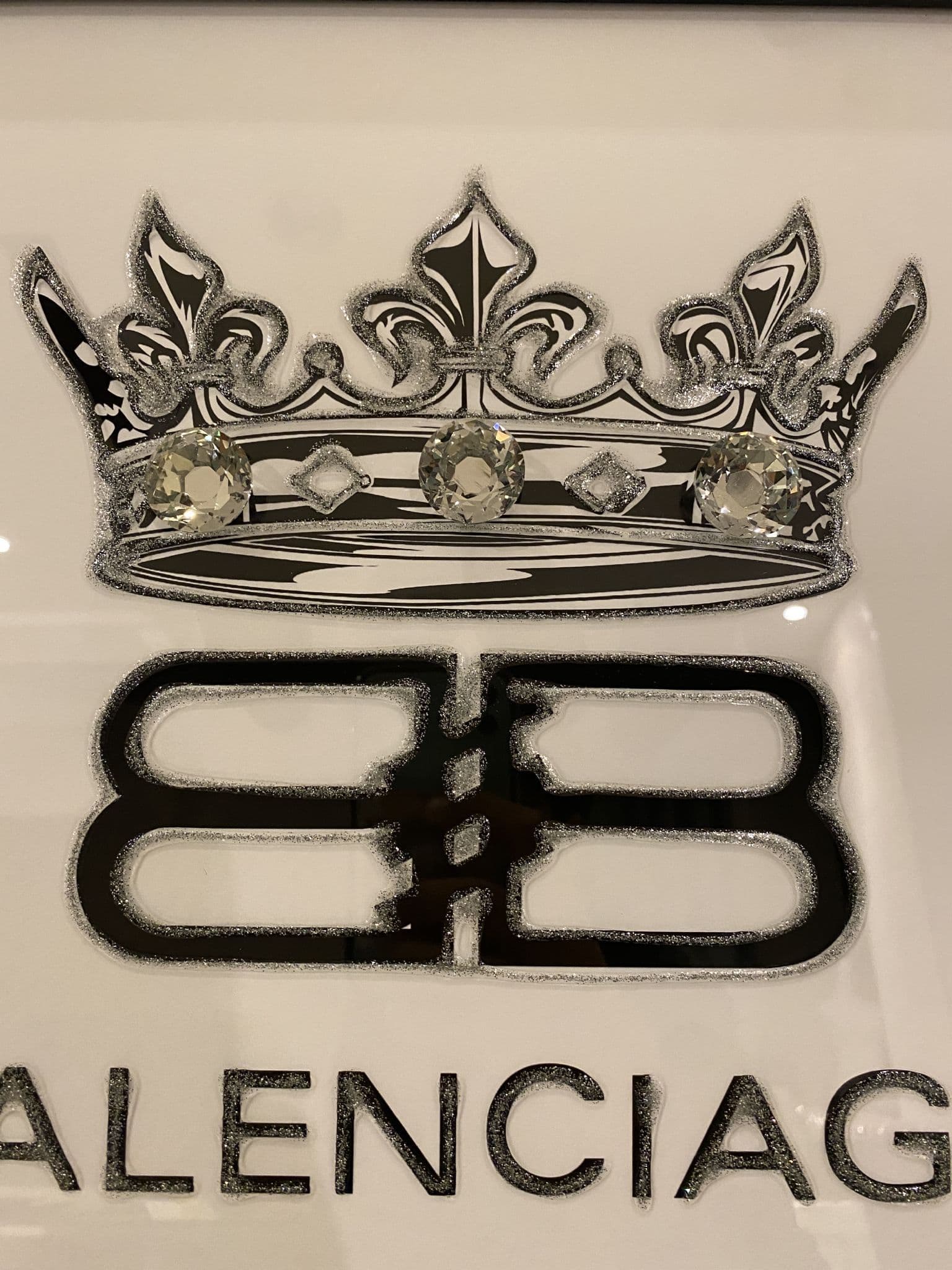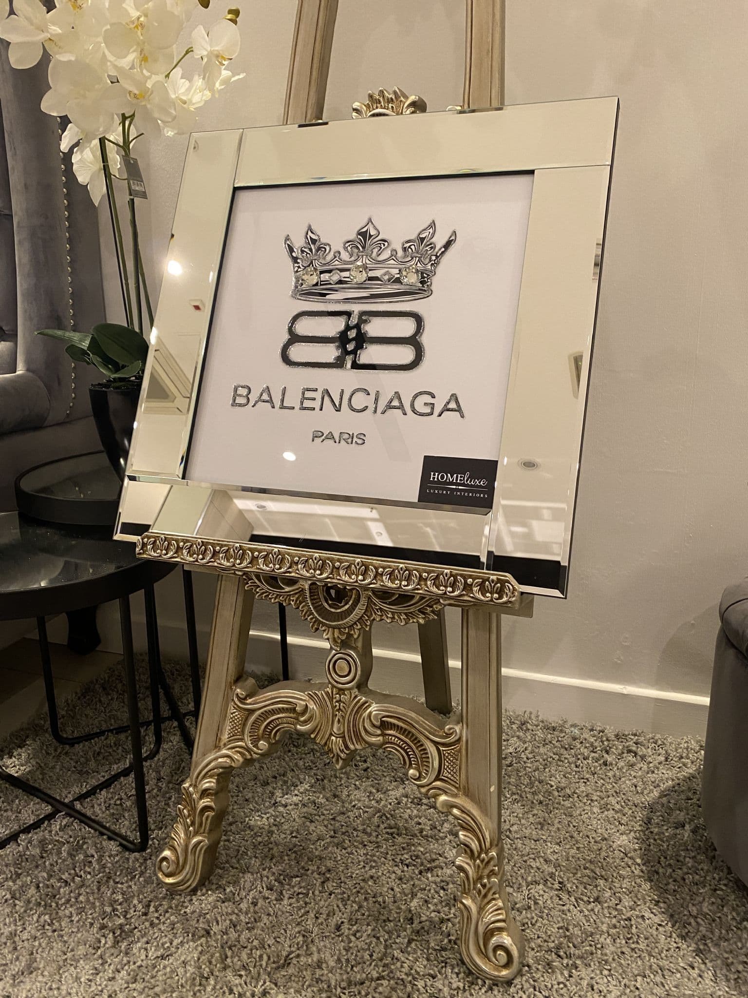 This picture is with a chic 'Crown Balenciaga & Black Crystal' that exhibits a classy design with glitter details around the picture creating a smart look for your home. Finished with a mirror frame.