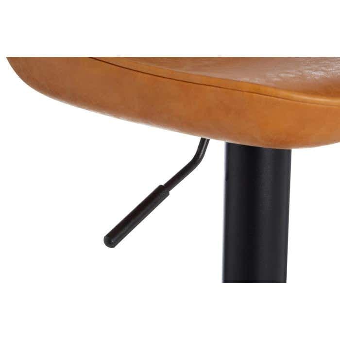Add a touch of modern elegance to your home bar or kitchen with the Dalston Set of Two Camel Bar Stools from Home Luxe Interior. Featuring a padded brown camel leather-effect seat and a sleek matte black base, these stools offer both comfort and style. The curved back provides support, and the adjustable height lever adds versatility, making these stools a practical yet chic addition to any contemporary space.