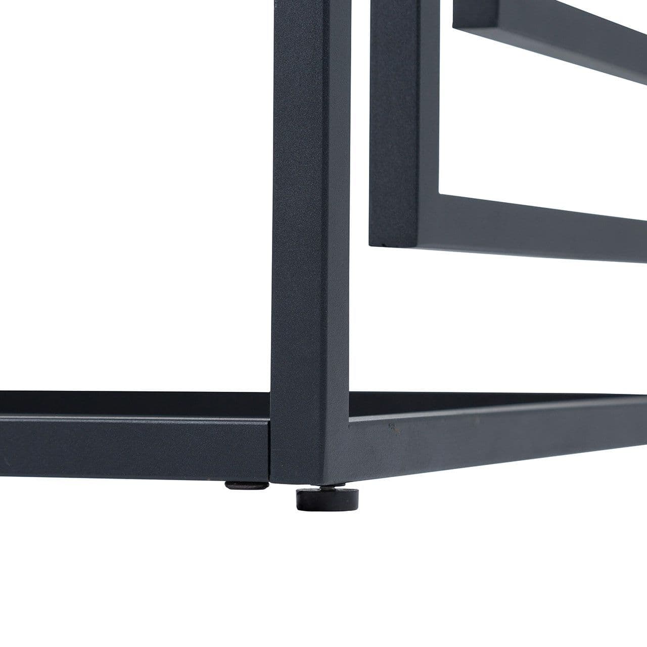 Add a touch of modern feel to any living area with the Devon coffee table. Featuring a sleek, black metal frame with a Grecian inspired framework along its sides and constructed with a grey wooden, faux concrete finish top