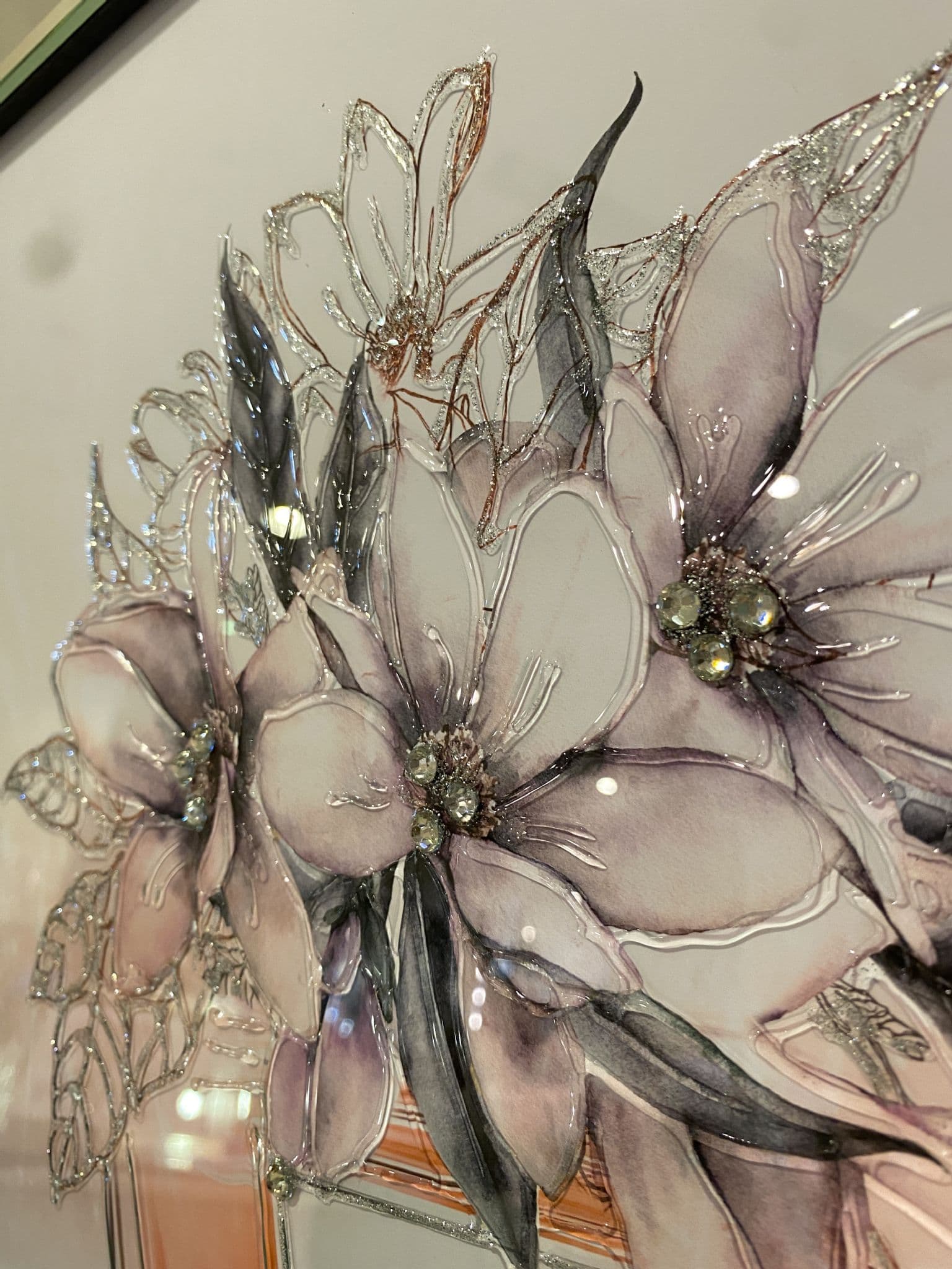 This picture features a 'Dior Perfume With Flower' that exhibits a rich design with glitter details around the picture, creating a smart look for your home. Finished with a mirror frame.