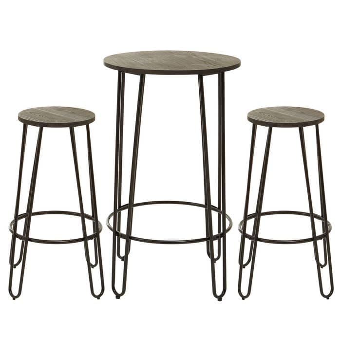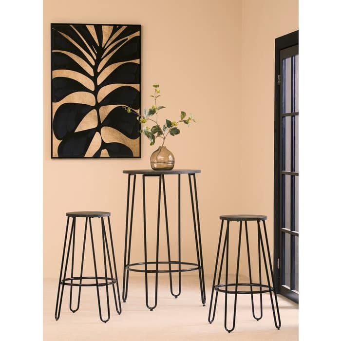 The District 3Pc Bar Table and Stool Set combines sleek, industrial style with practical design. With its sturdy construction and timeless elegance, it's the perfect addition to any modern home bar or dining space.