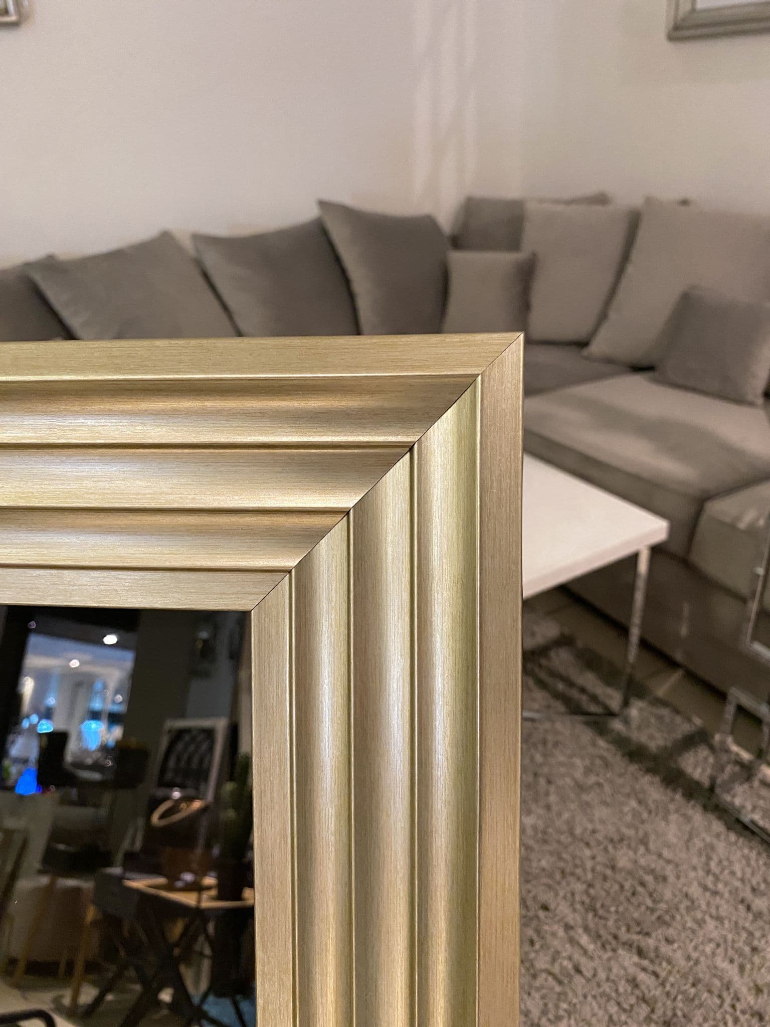 This picture features 'English Bulldog Family Crown', exhibiting a rich design with liquid details around the picture, creating a smart look for your home. Finished with a Champagne Step Frame.