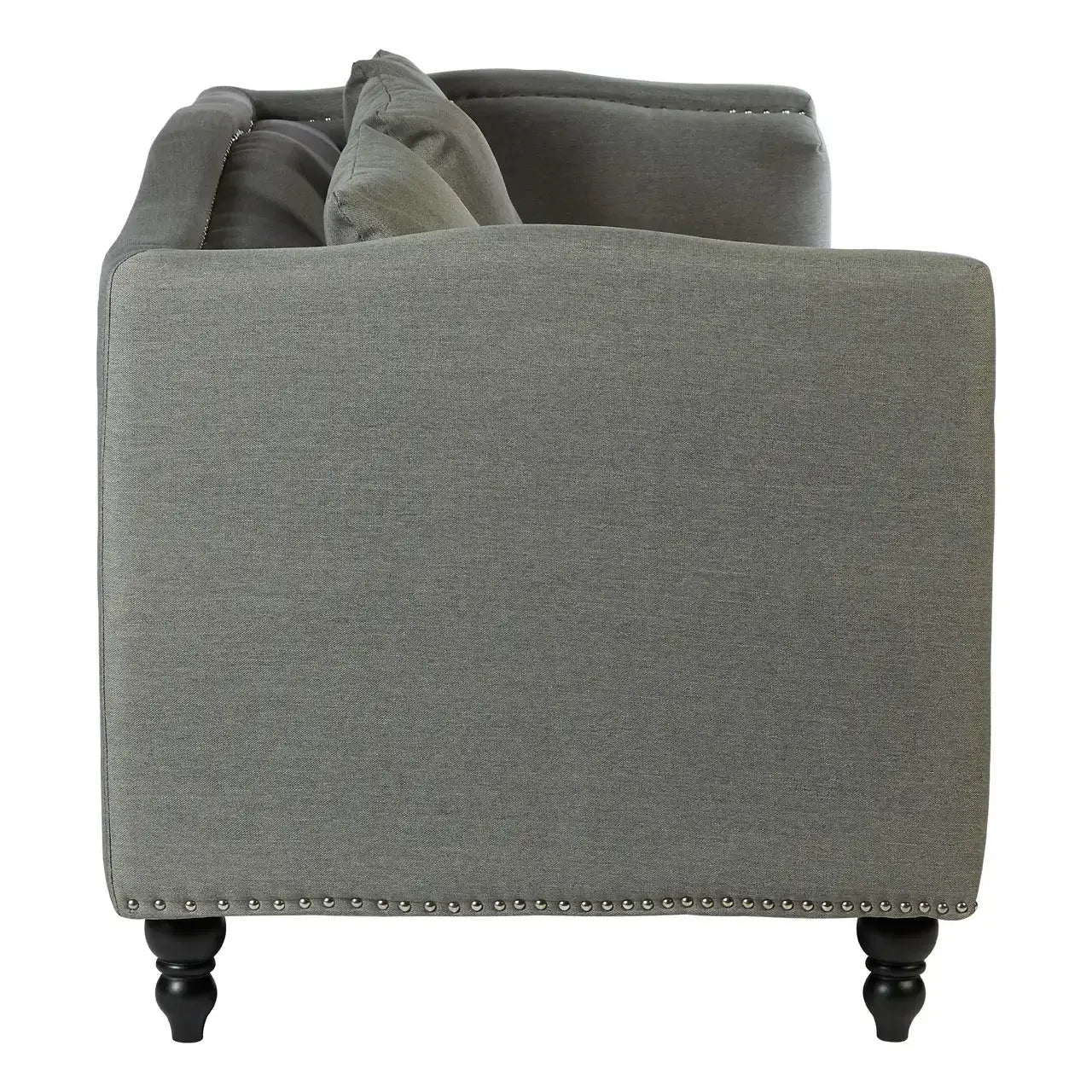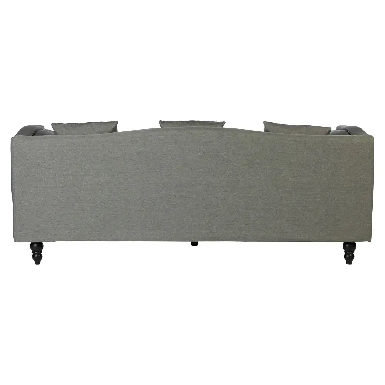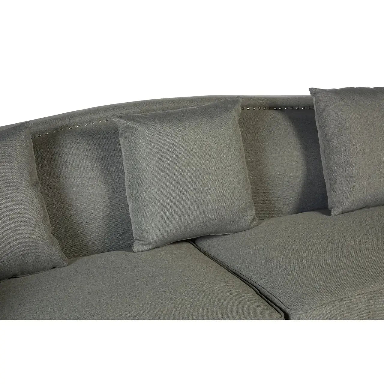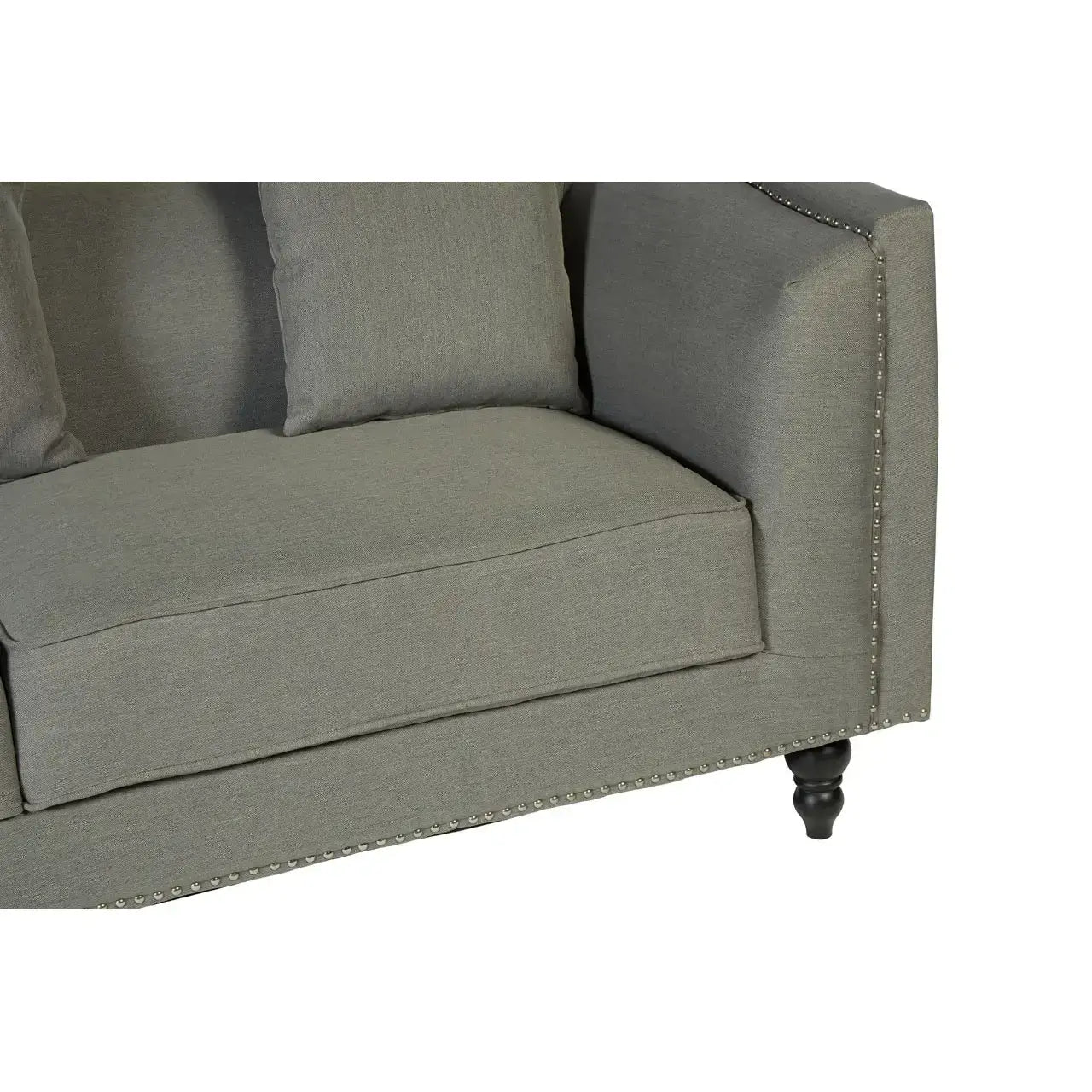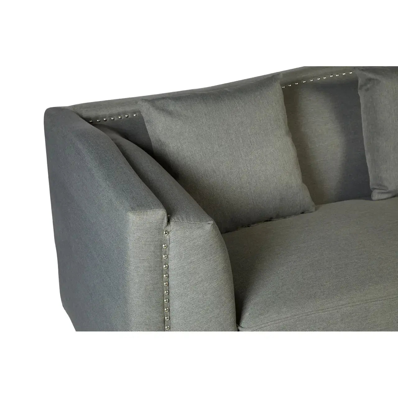 Make a bold and elegant statement in your living room with the Feya Three Seater Grey Fabric Sofa from Home Luxe Interior. The tuxedo design, featuring a back that aligns perfectly with the armrests, offers a modern and sophisticated silhouette. Upholstered in soft grey fabric with stunning silver stud detailing, this sofa combines both style and comfort. The curved body and round feet add a subtle touch of elegance, while the sustainable eucalyptus wood feet provide durability and eco-conscious support.