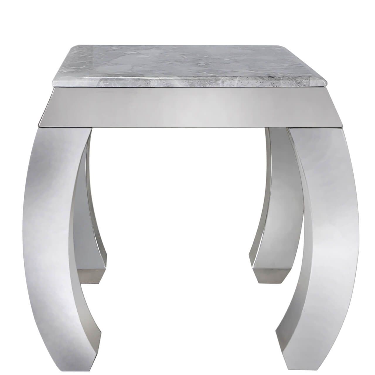 A true essence of classy and glamorous style, this Florida end table has been crafted to the highest of quality. This luxe table contains a stunning, curved construction for a unique flare in a glass design and topped off with a stone styled marble table top. Make a statement in your living area and leave your guests in awe