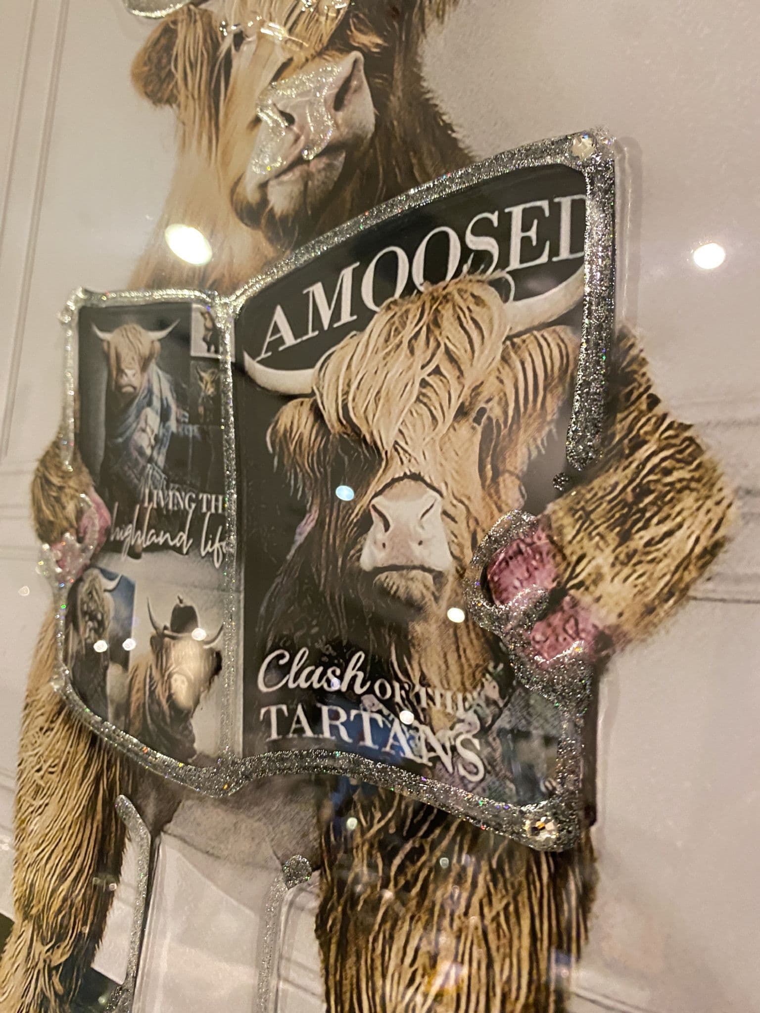 This picture features 'Highlander Sitting Reading', exhibiting a rich design with liquid details around the picture, creating a smart look for your home. Finished with a Mirror Frame.