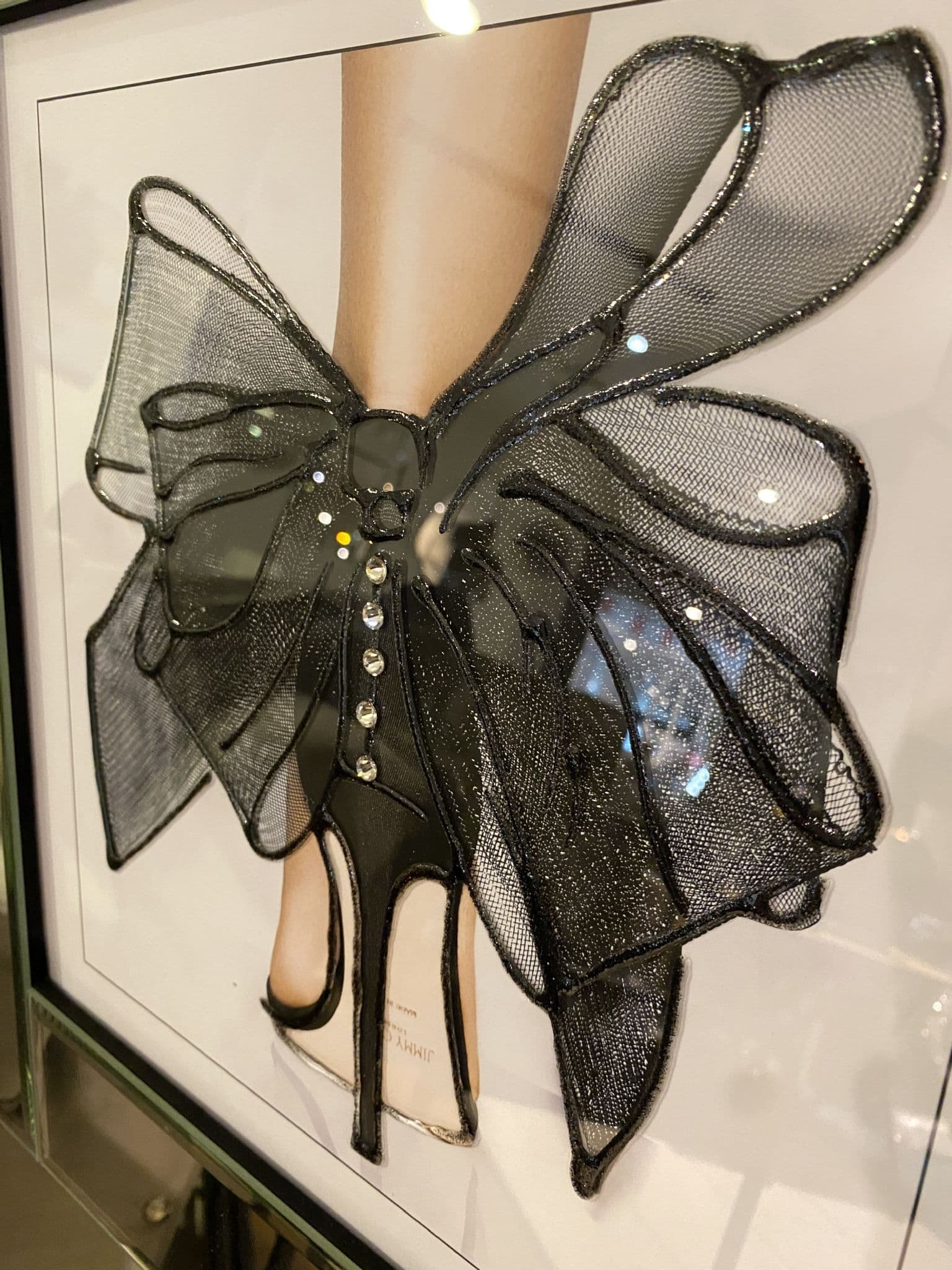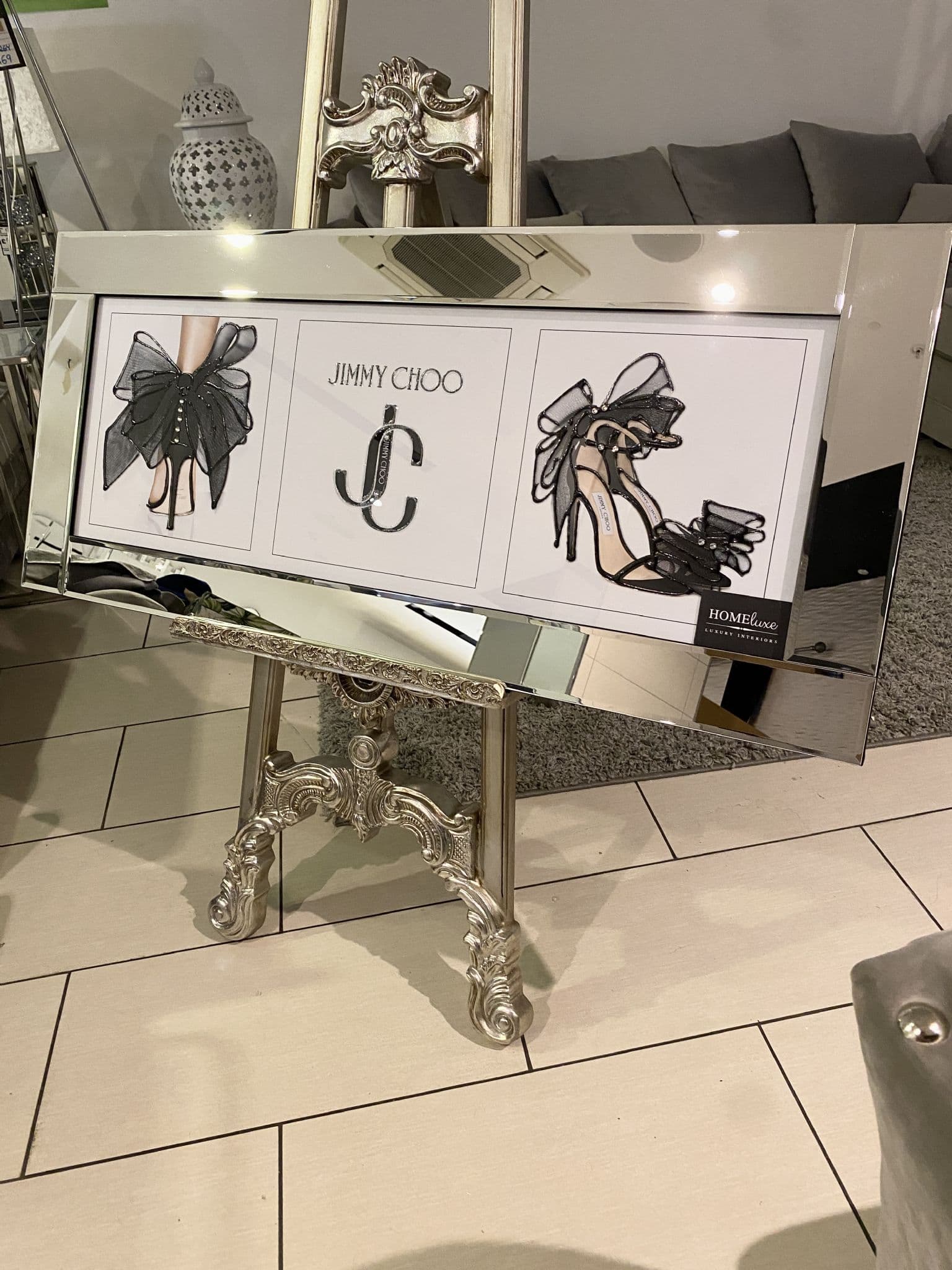 This picture features 'Jimmy Choo Black Fashion Shoes', exhibiting a rich design with liquid details around the picture, creating a smart look for your home. Finished with Mirror Frame.