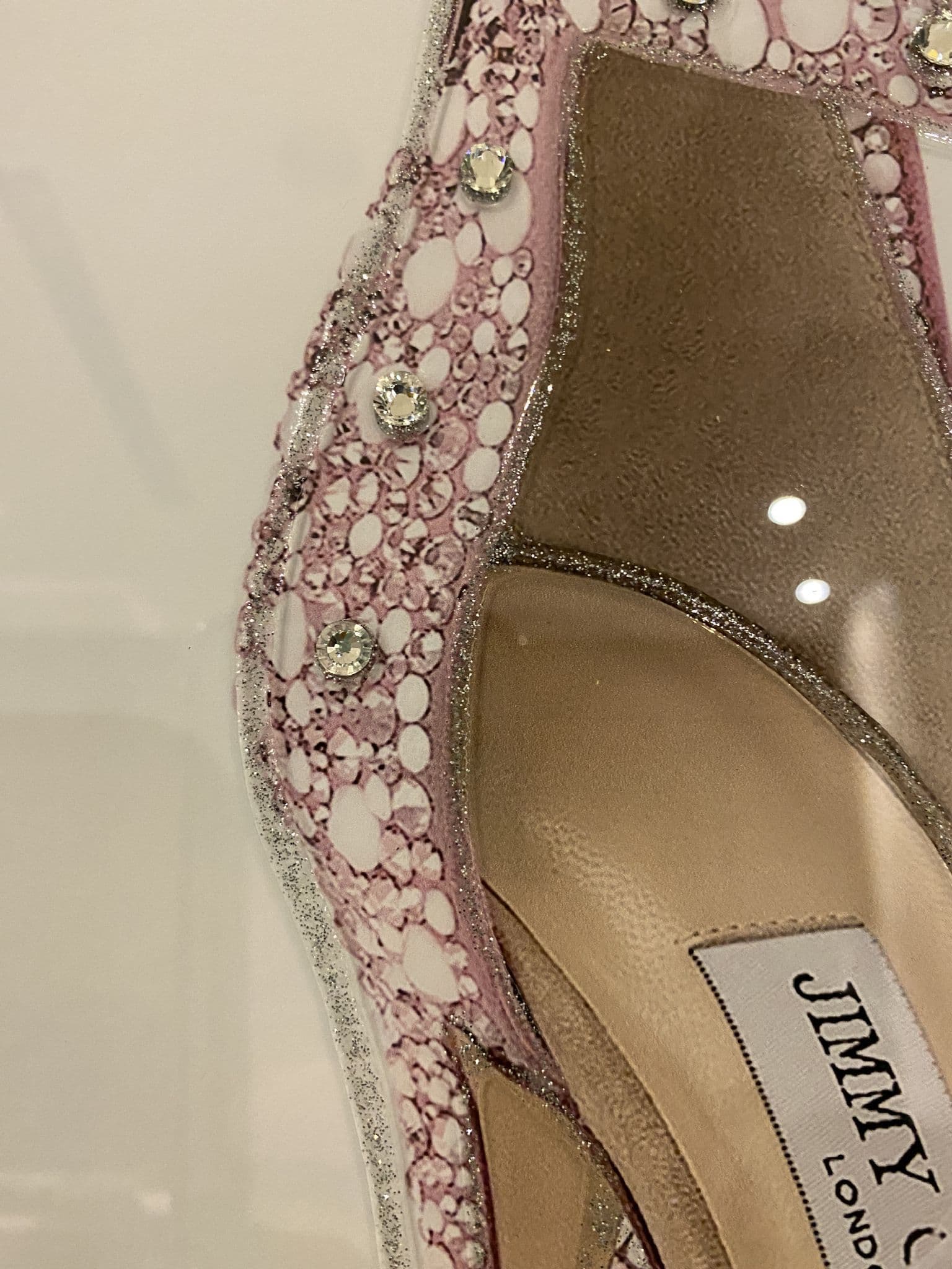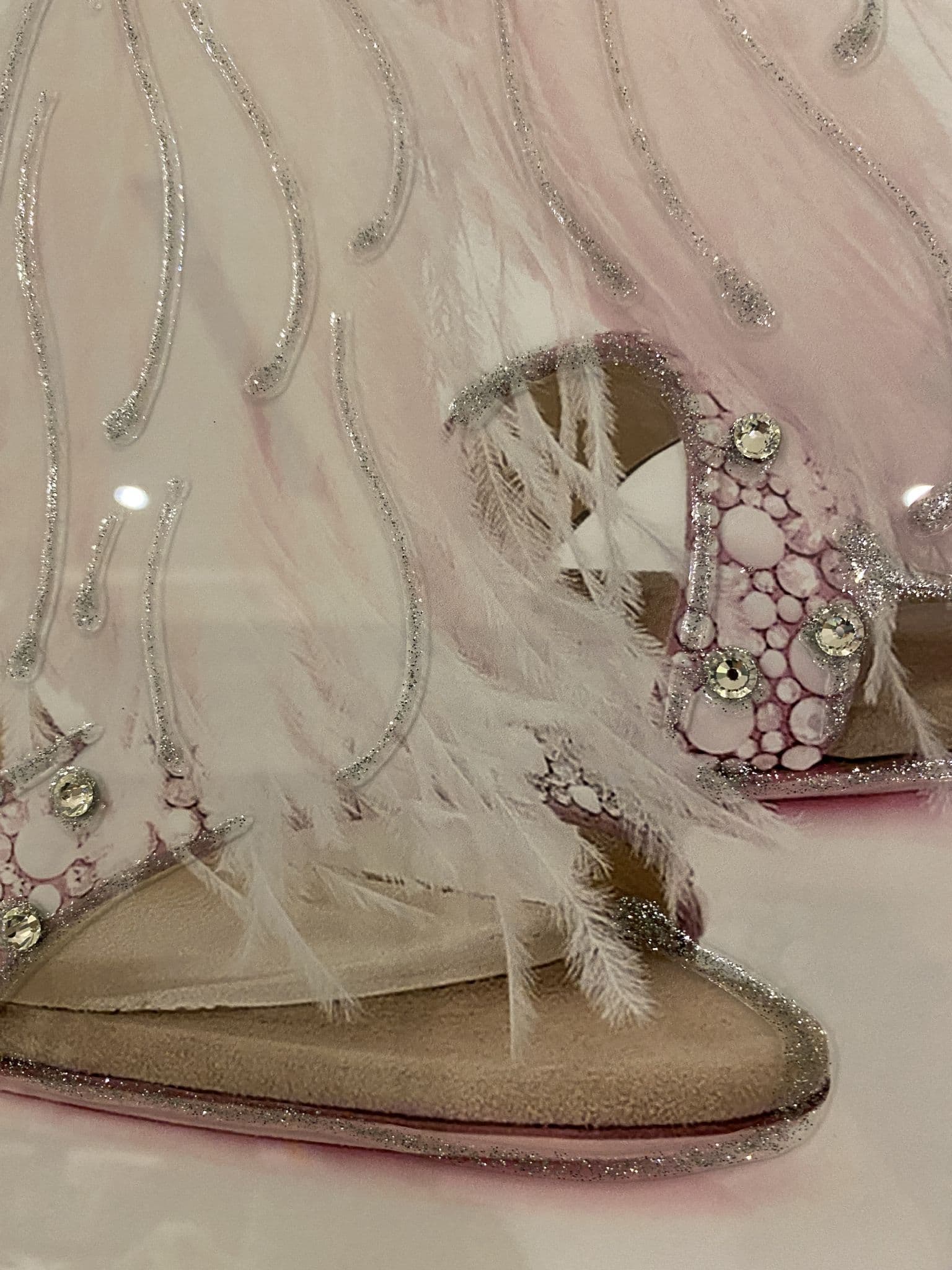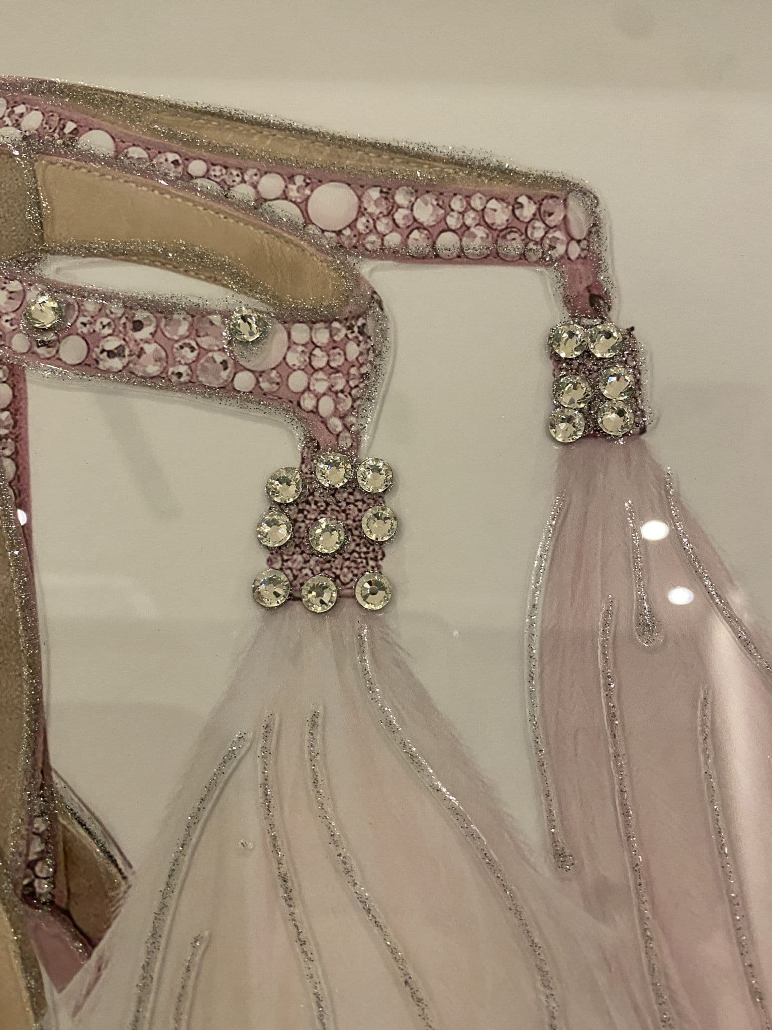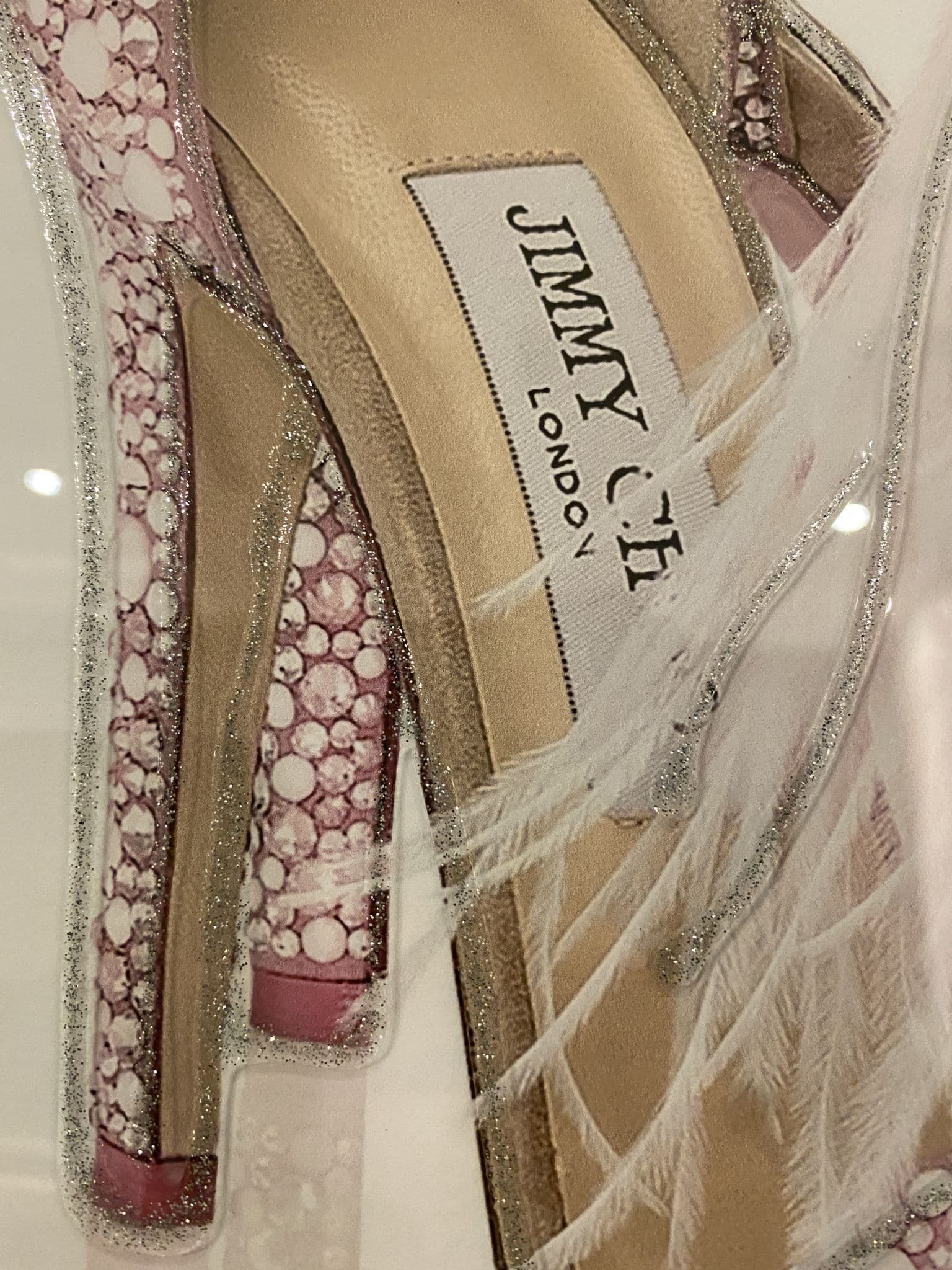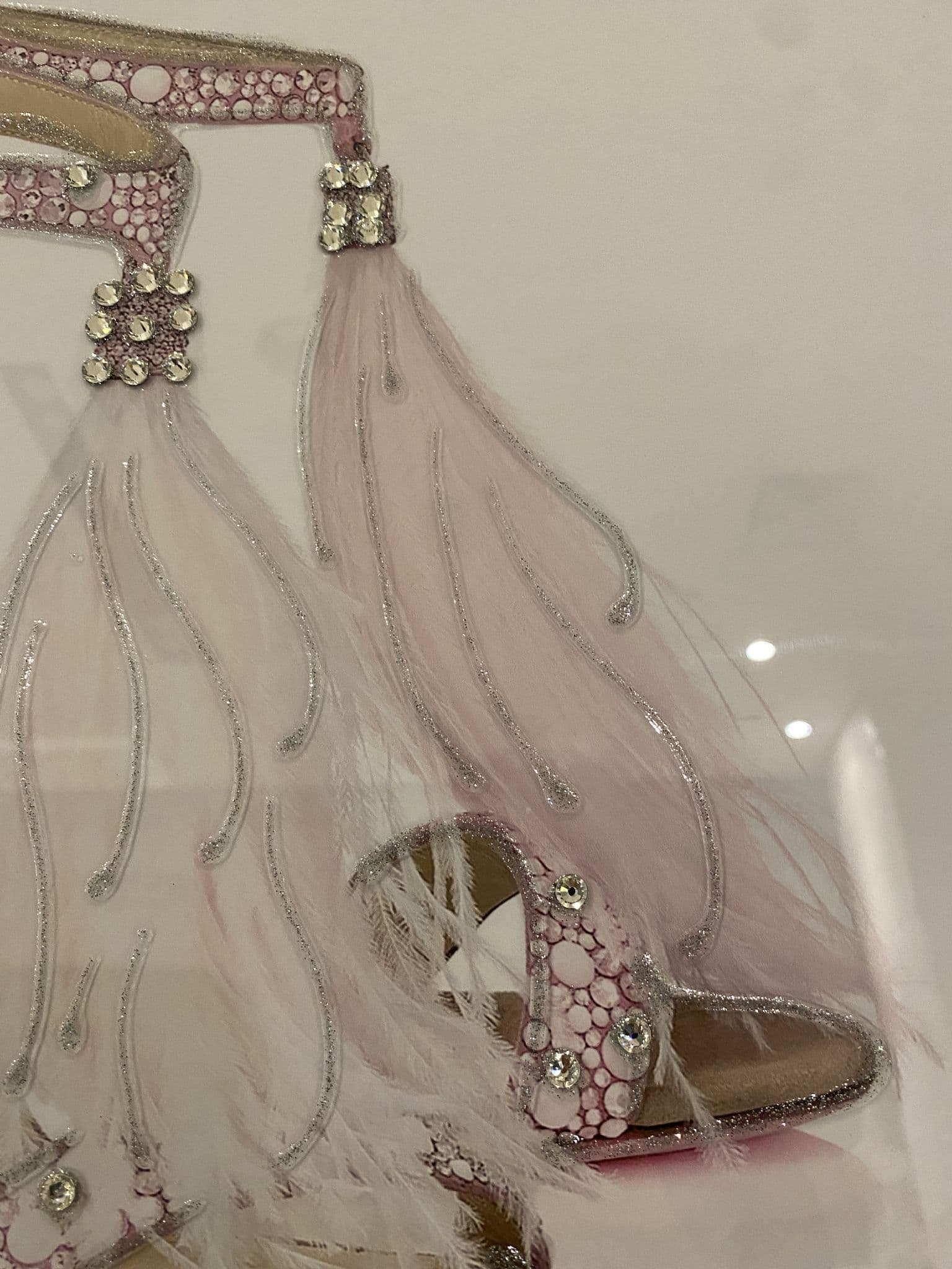 This picture is with a chic 'Jimmy Choo Feather Shoes Pink' that exhibits a classy design with glitter details around the picture creating a smart look for your home. Finished with a mirror frame.