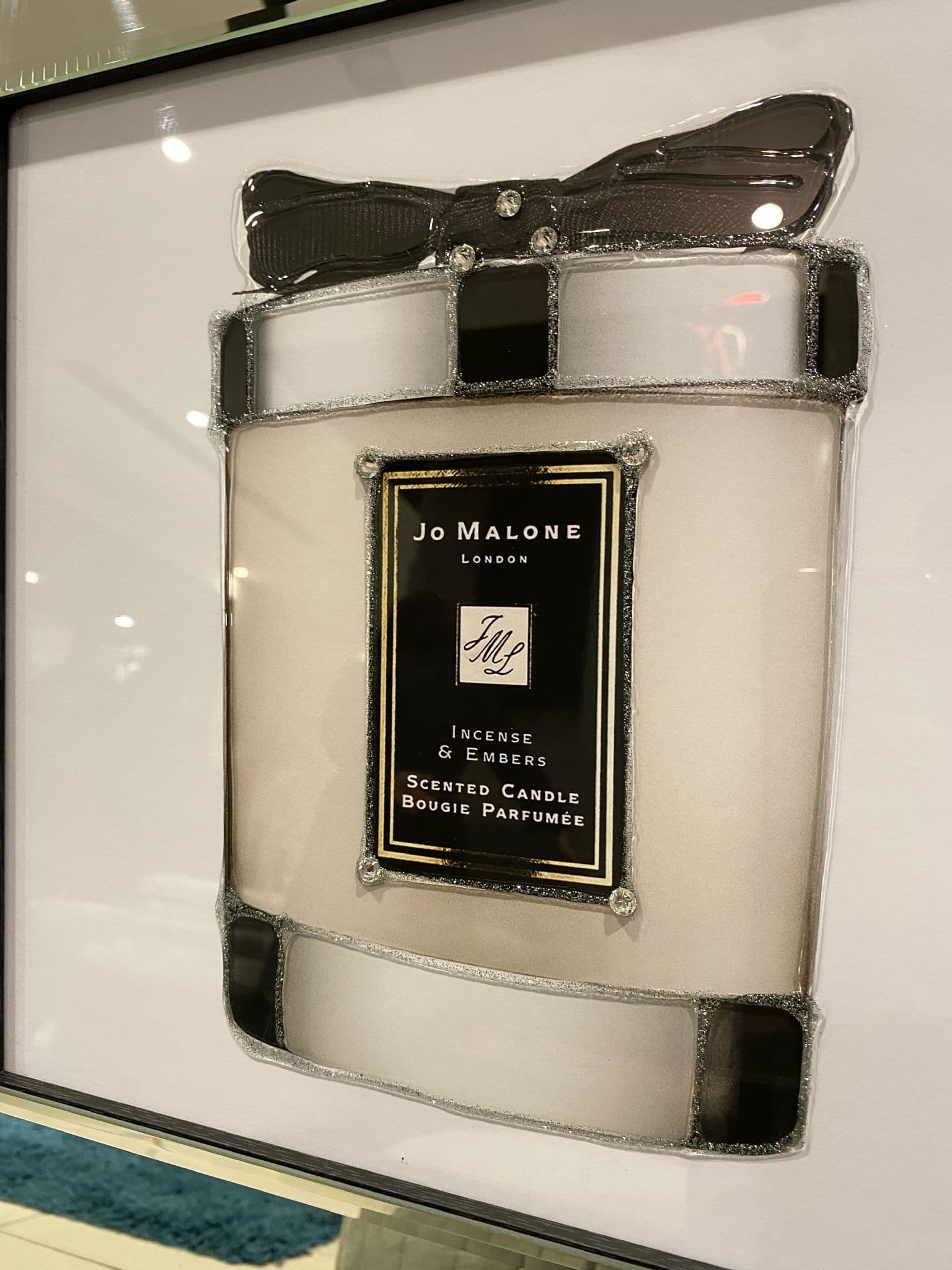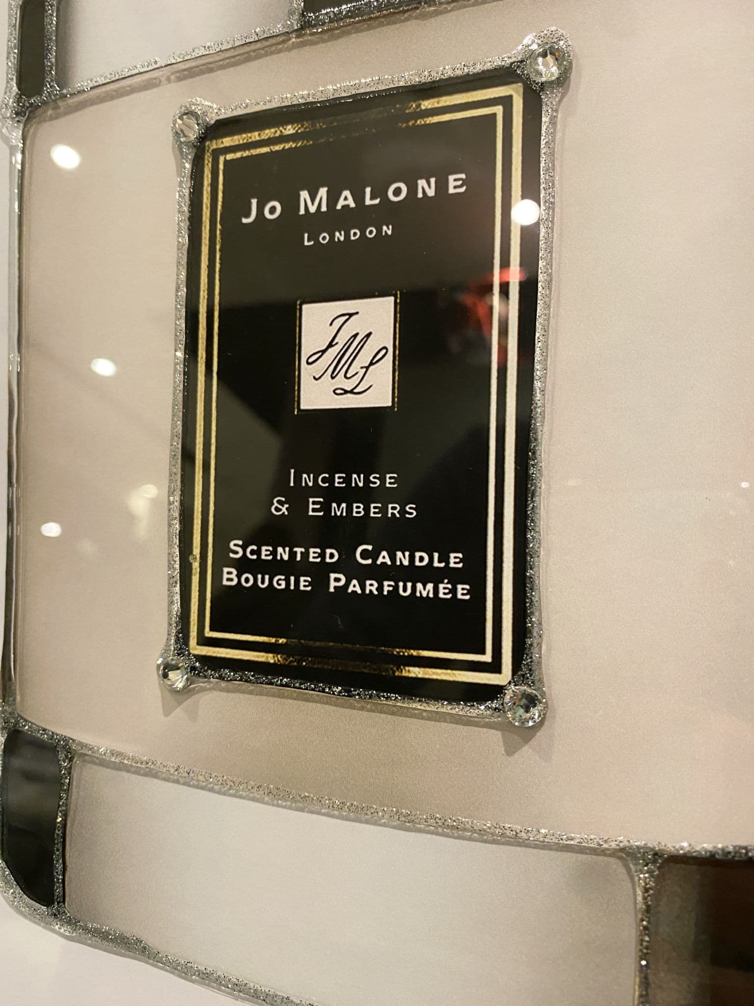 This picture is with a 'Jo Malone Back Perfume' which exhibits a classy vibe with glitter details around the picture creating a smart look for your home. Finished with a mirror frame.