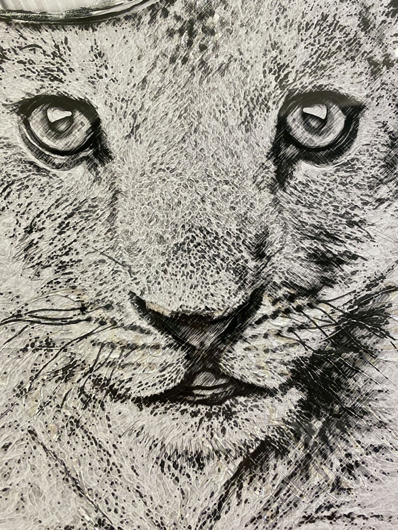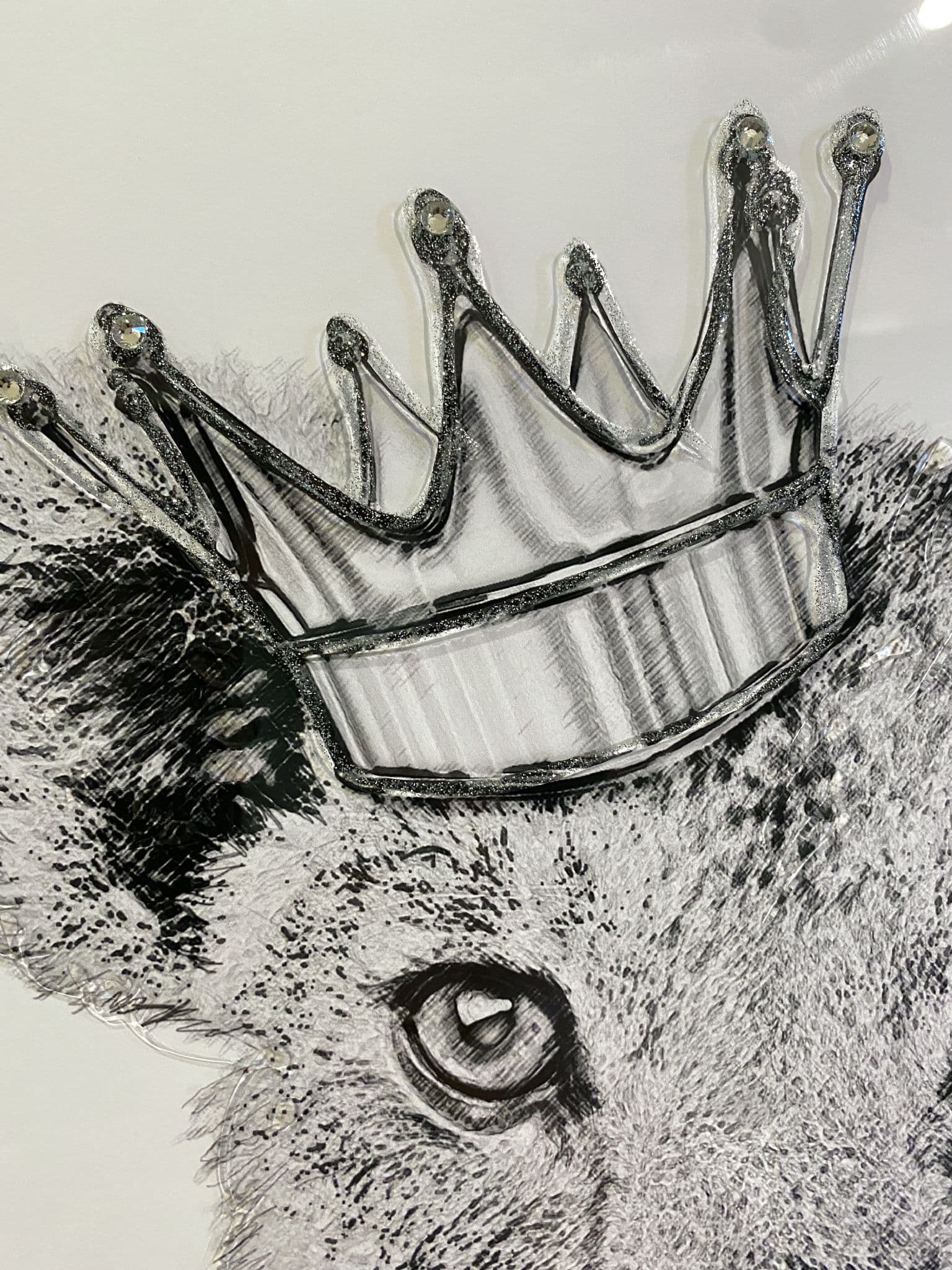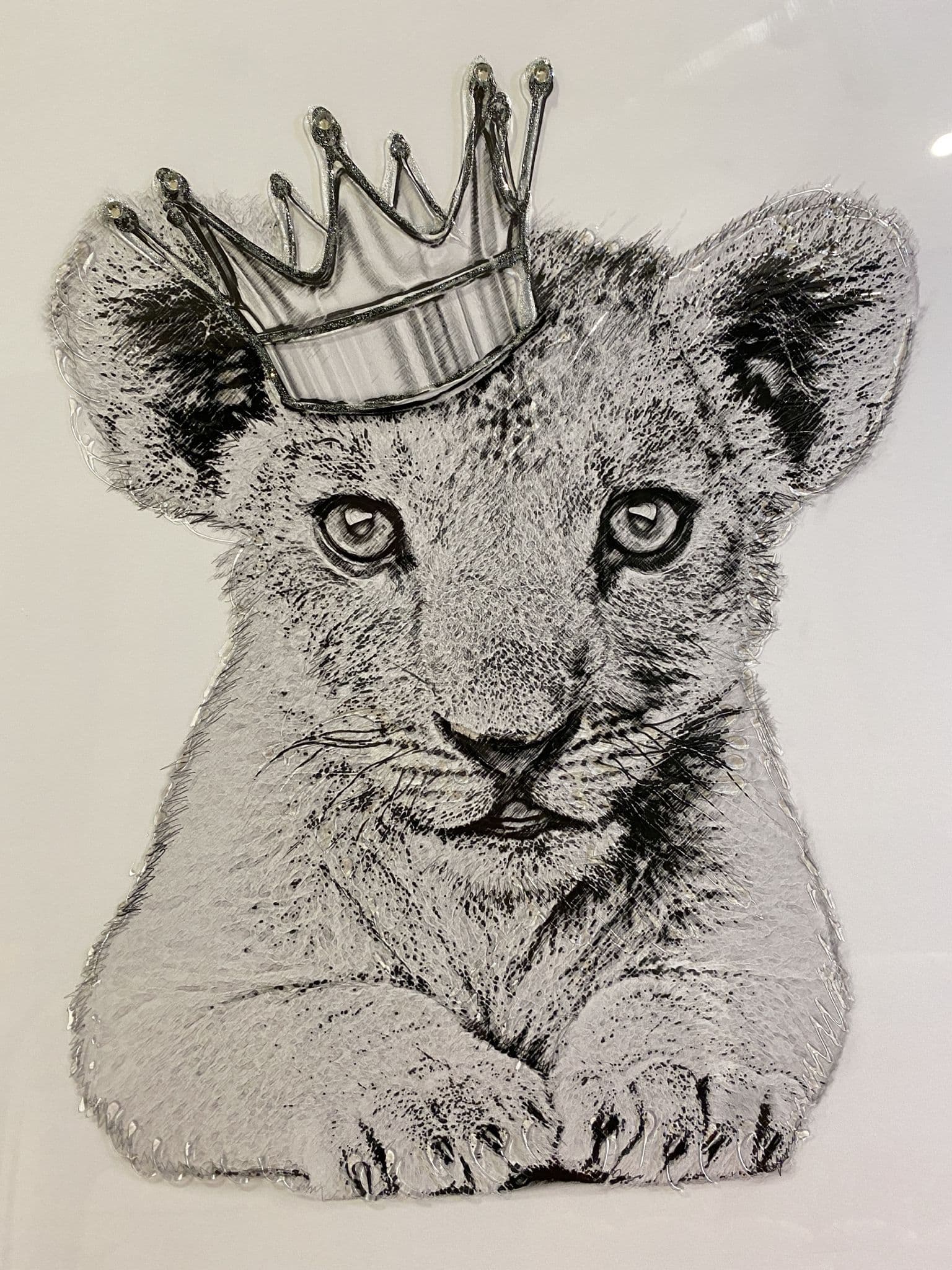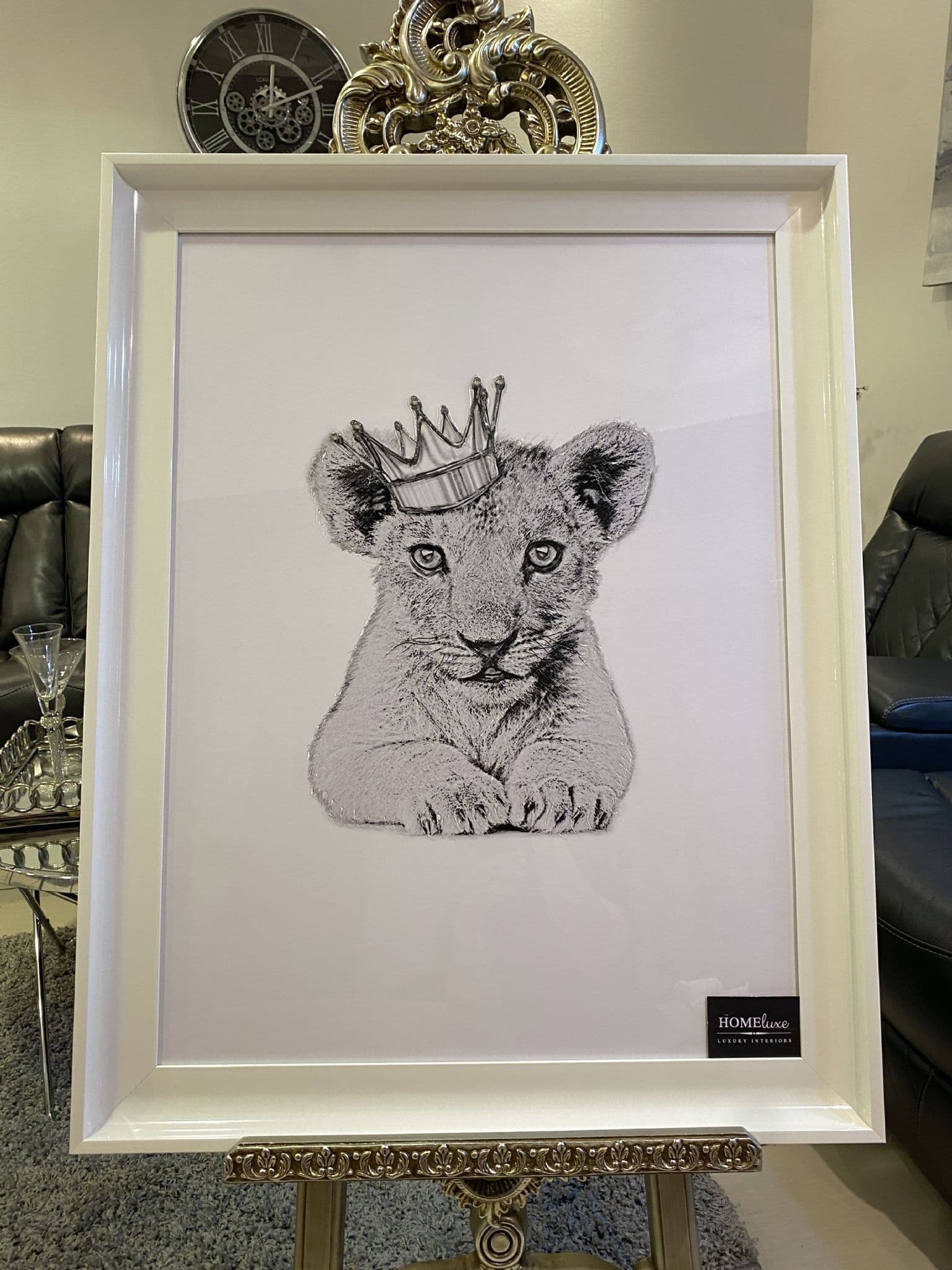 This picture is with a chic 'Lion Cub King' that exhibits a classy design with glitter details around the picture creating a smart look for your home. Finished with a white frame.