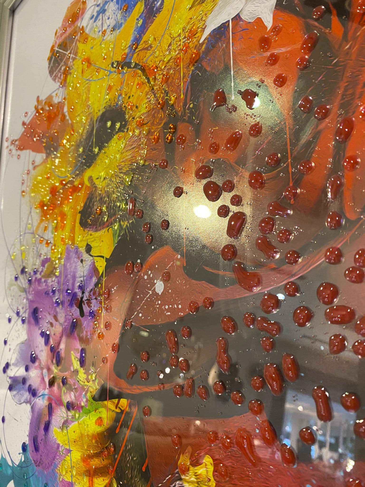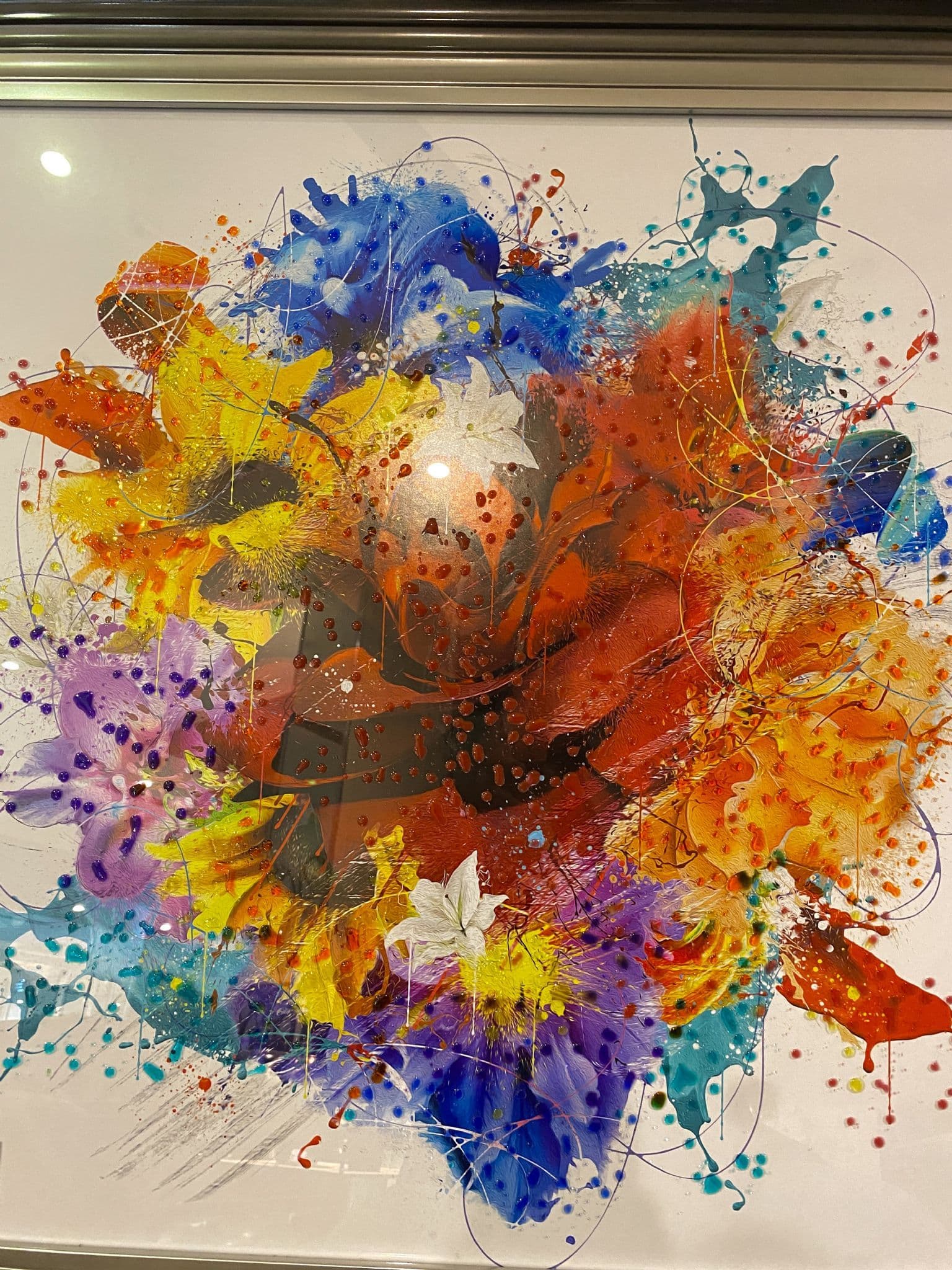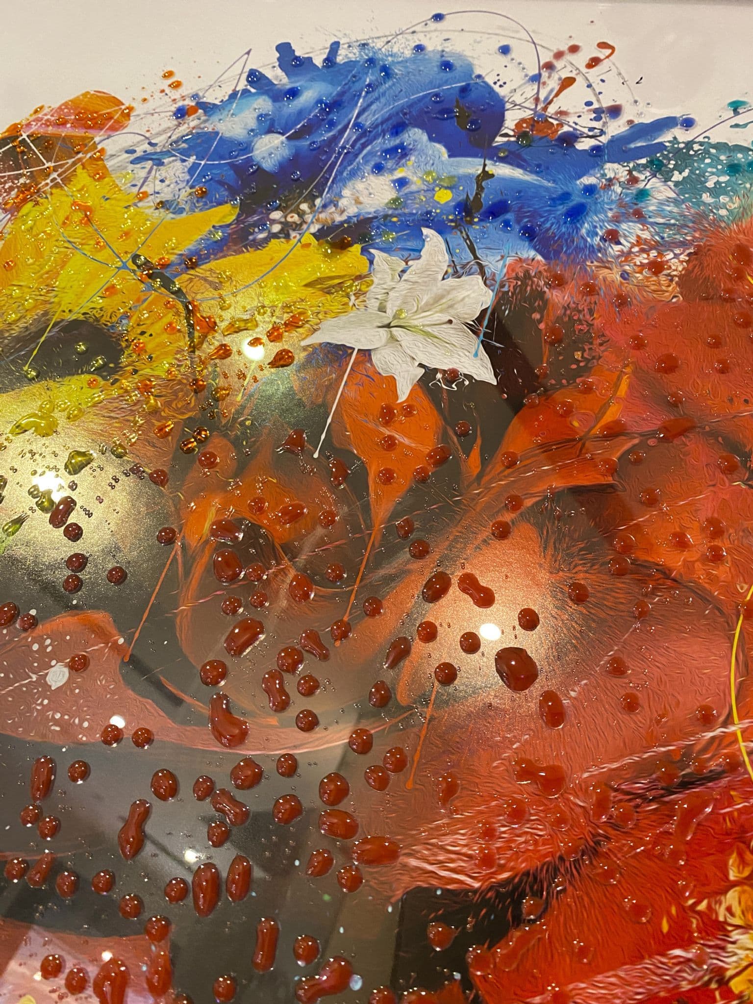 This picture features 'Lotus Flower Multicolour', exhibiting a rich design with liquid details around the picture, creating a smart look for your home. Finished with a black step frame.
