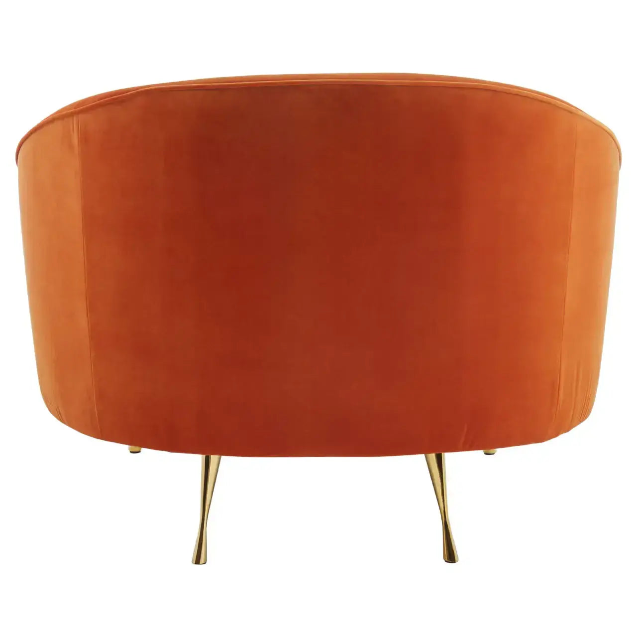 Add a pop of color and modern elegance to your living space with the Manhattan Orange Velvet Armchair from Home Luxe Interior. This statement piece is designed for both style and comfort, making it the perfect addition to any contemporary home. The vibrant orange velvet upholstery is complemented by a curved backrest, thick padding, and warm metallic legs, creating a luxurious, boutique-inspired look.
