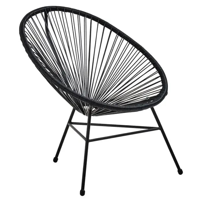 This patio furniture is a modern take on a traditional design. Its steel base and rattan rope design offers limitless relaxation. This set, includes a dual tone gradient style and features a complementary tempered glass table, a modern touch to any outdoor settings.