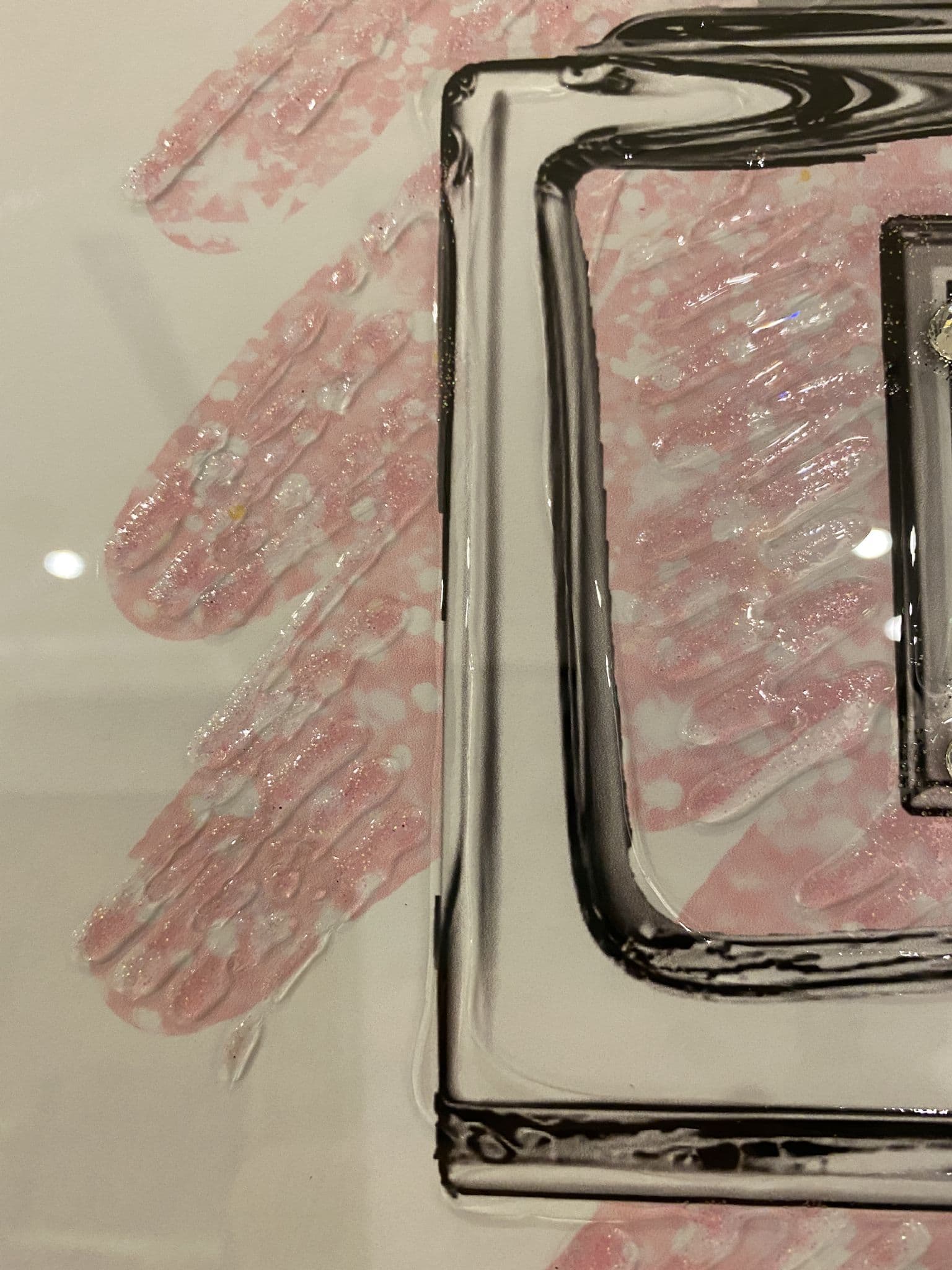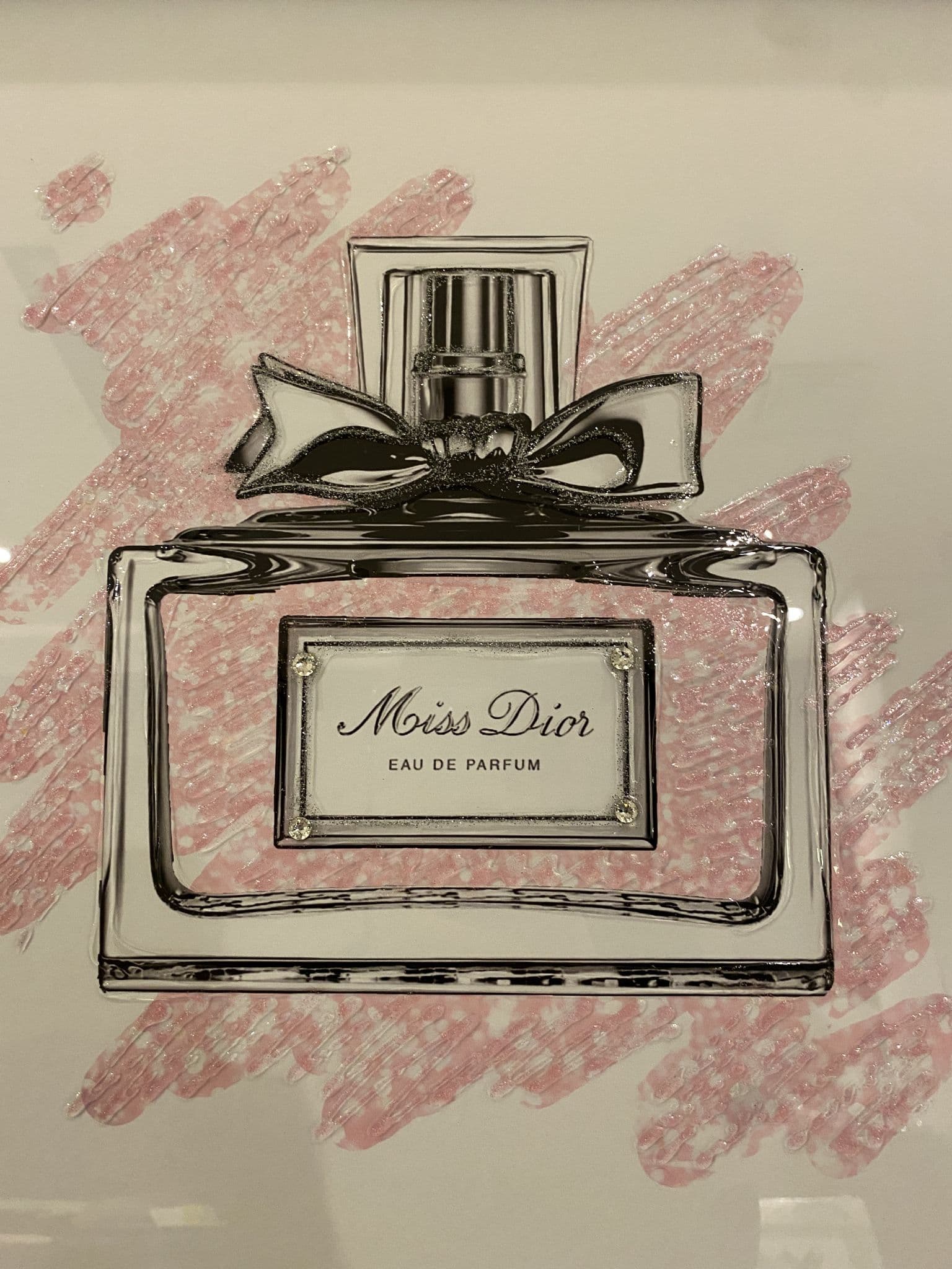 This picture is with a chic 'Brushed Dior Pink Perfume' that exhibits a classy design with glitter details around the picture creating a smart look for your home. Finished with a mirror frame.