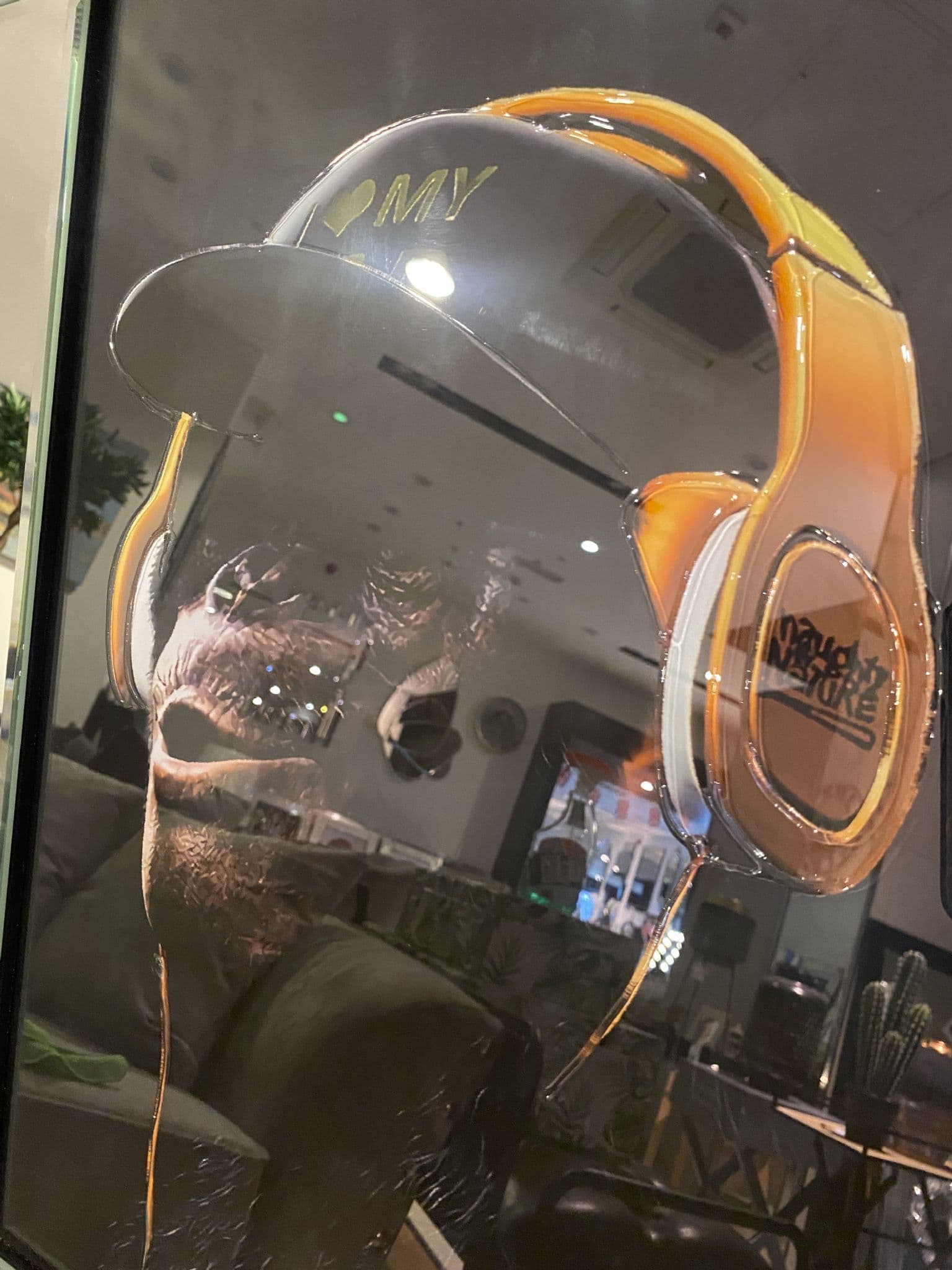This picture features 'Music Urban Style', exhibiting a rich design with liquid details around the picture, creating a smart look for your home. Finished with a Mirror Frame.