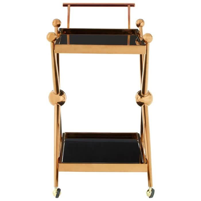 Enhance your home with the Novo 2 Tier Rose Gold and Cross Design Trolley by Home Luxe Interior, a statement piece that combines elegance with practicality. Featuring a sleek rose gold-finished steel frame and black tempered glass trays, this trolley is perfect for both serving and displaying your finest barware. Its contemporary cross-design sides add a stylish touch, making it a must-have for modern interiors.