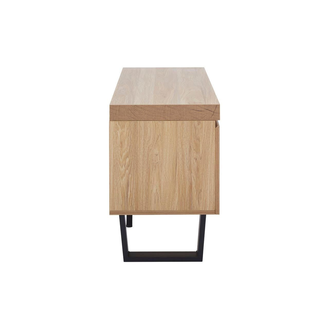 The Oakton Media Unit from Home Luxe Interior brings a perfect blend of natural warmth and modern design to your living space. Featuring a beautiful natural wood body contrasted by chic black metal legs, this media unit is a striking addition to any room. The minimalist design includes two handle-less cupboards and open shelving, offering ample storage space while keeping your space tidy and organized. A thoughtfully designed cable management feature ensures a neat and uncluttered look.