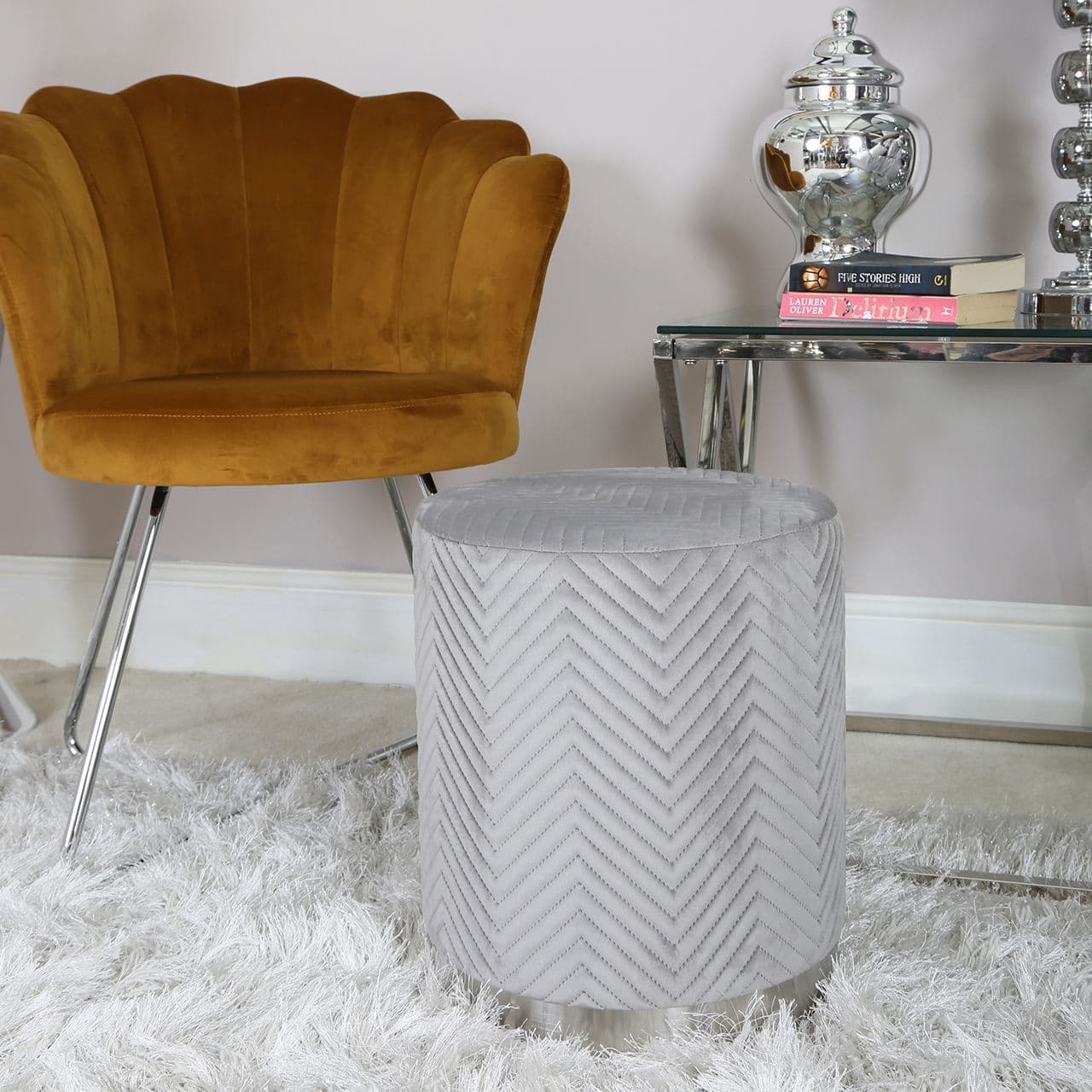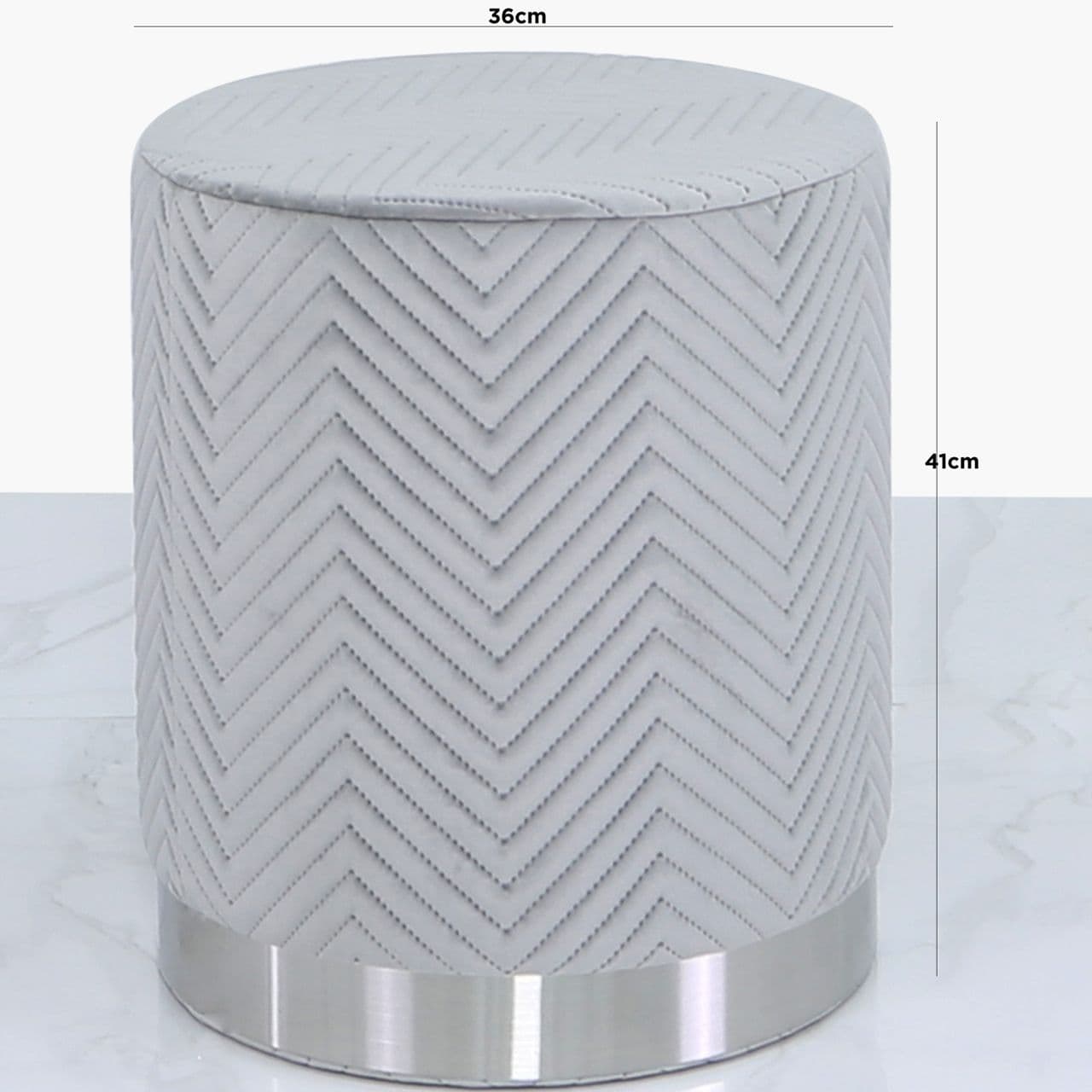 Style your living area with this chic Round Stool. Designed with contemporary patterning and featuring a complementary brushed grey shade and a classy chrome base. Stool can be used as a comfortable seat or a footstool