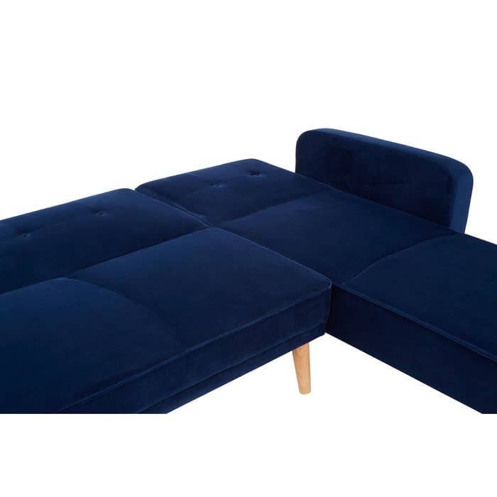 The Serene 3 Seat Navy Sofa Bed from Home Luxe Interior is a luxurious statement piece designed for both style and comfort. Upholstered in soft navy velvet, this modern sofa bed features clean lines, piped edges, and elegant button tufting on the backrest. Resting on neatly angled natural rubberwood legs, it blends contemporary sophistication with classic detailing, making it a perfect addition to any stylish living space.