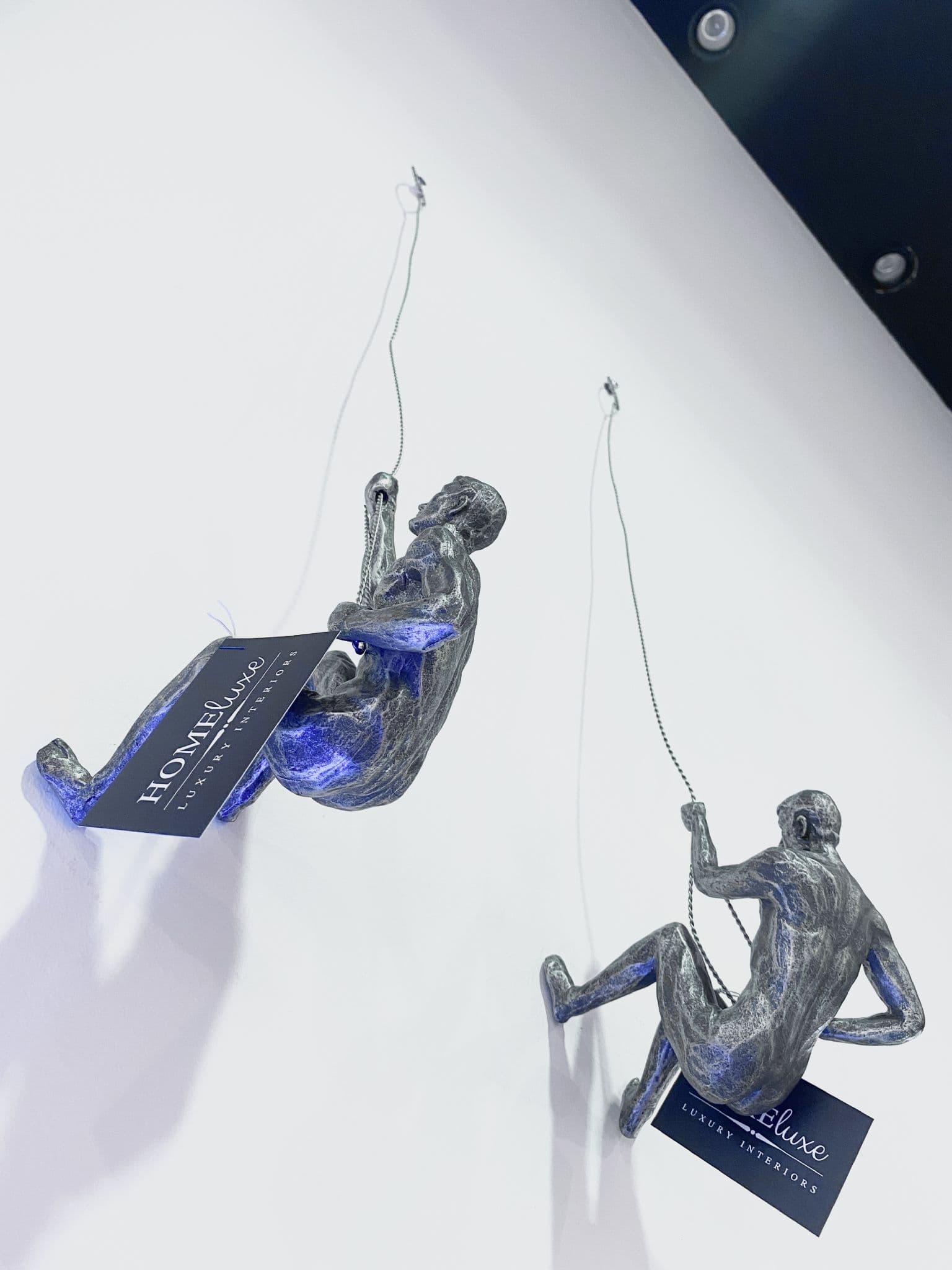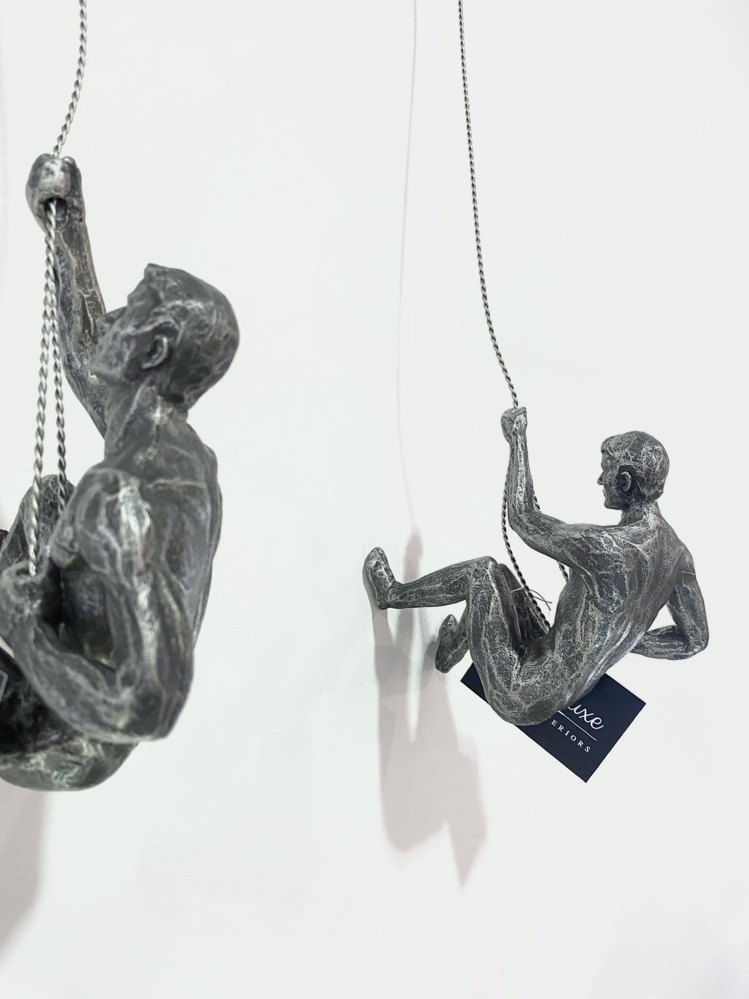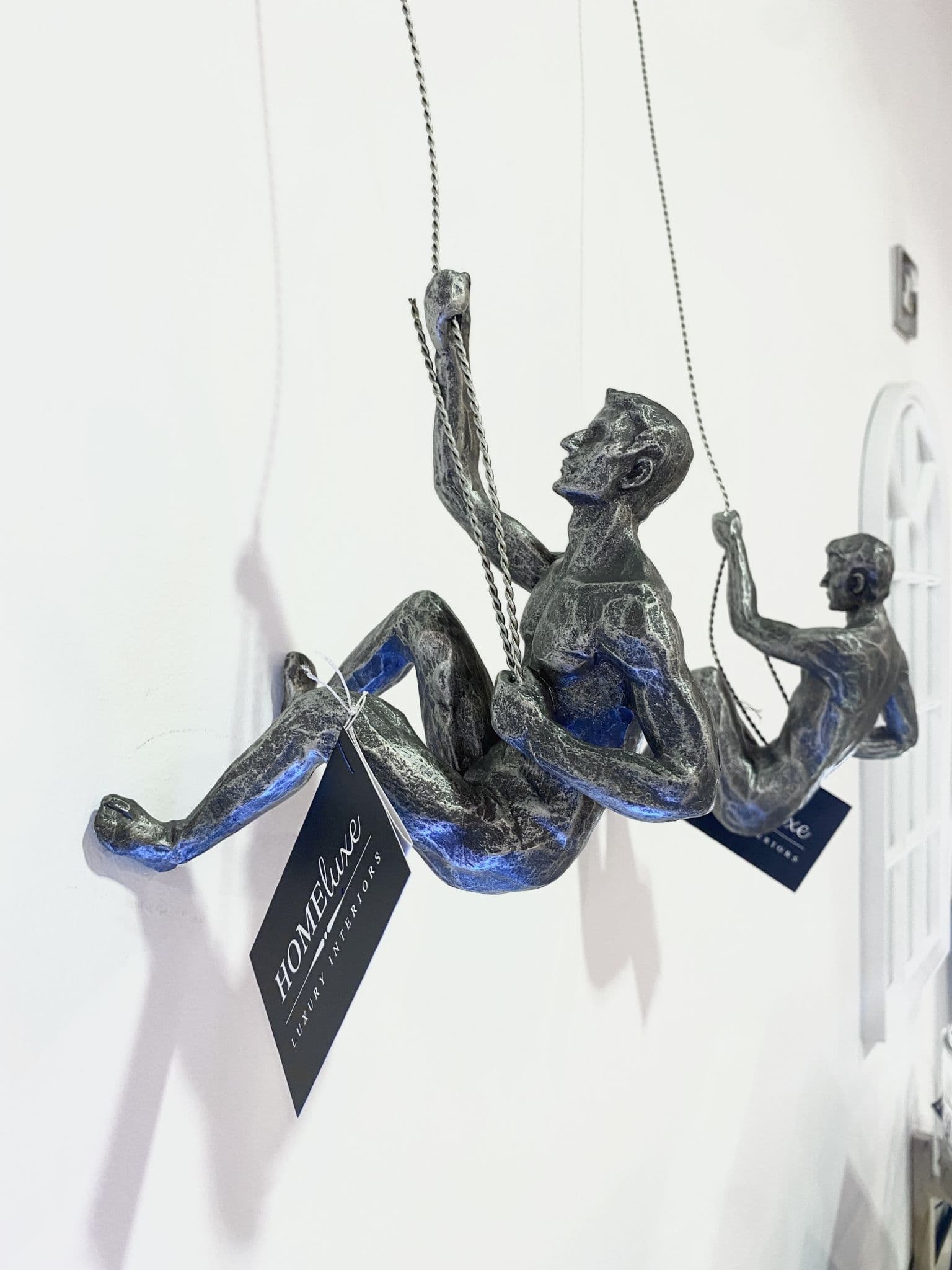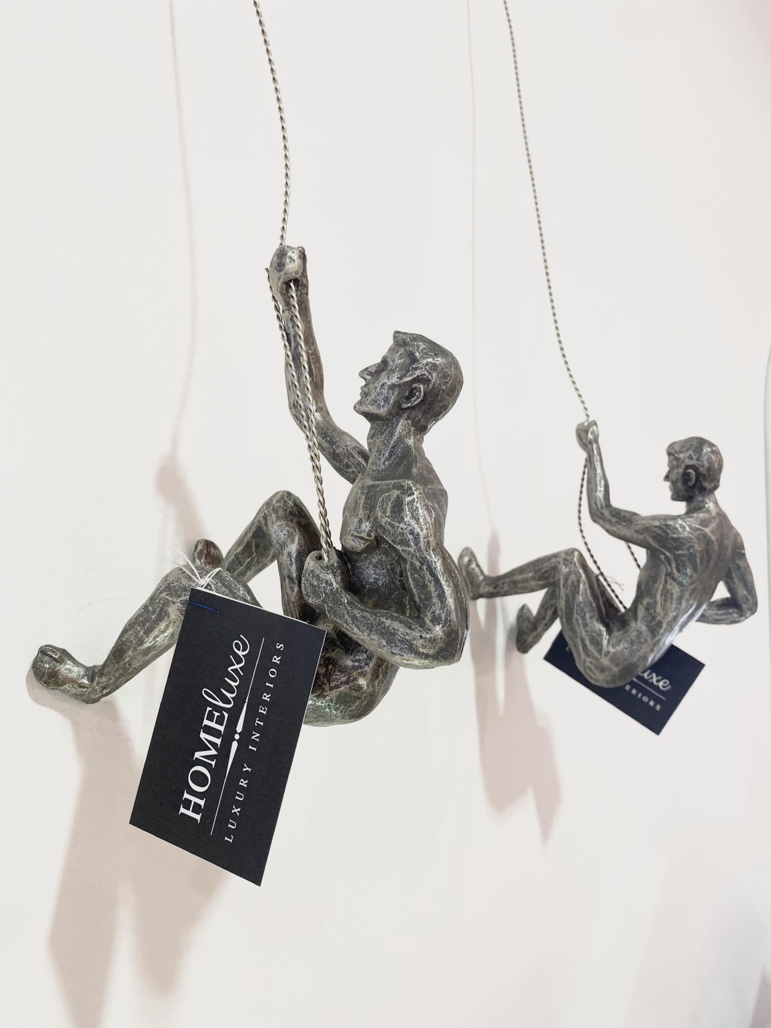 These elegant ' Abseiling Man Decor' are built from polyresin with a silver finish, featuring refined and realistic detailing and attached with a rope piece to hang on your wall, offering height and scale. Perfect for any area in the home and for the modern, contemporary or traditionally styled interiors