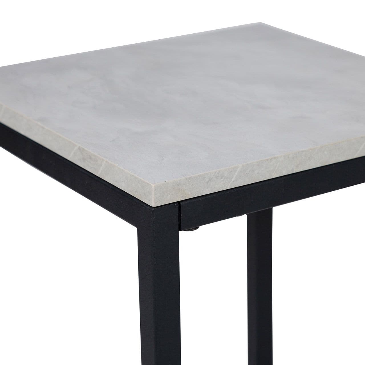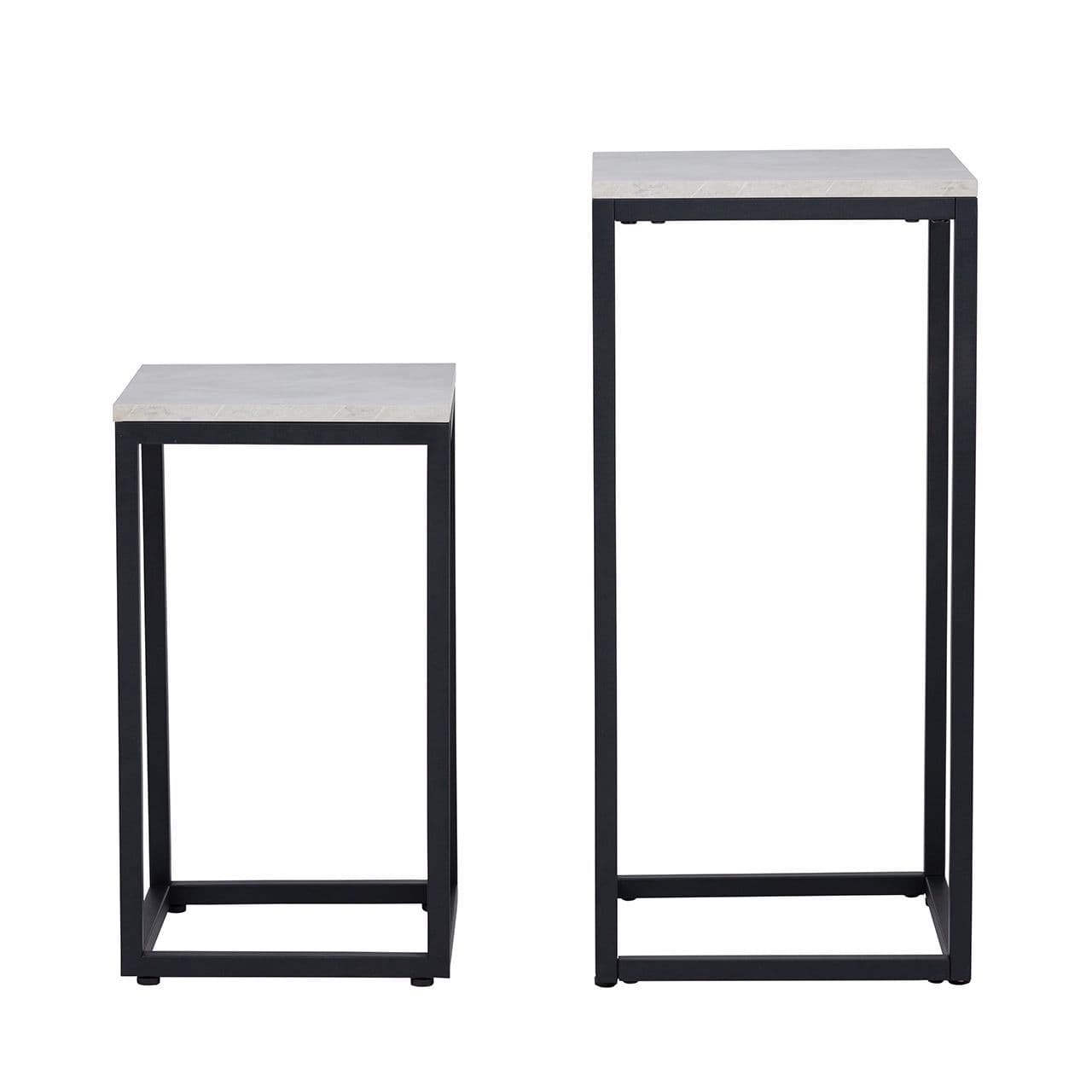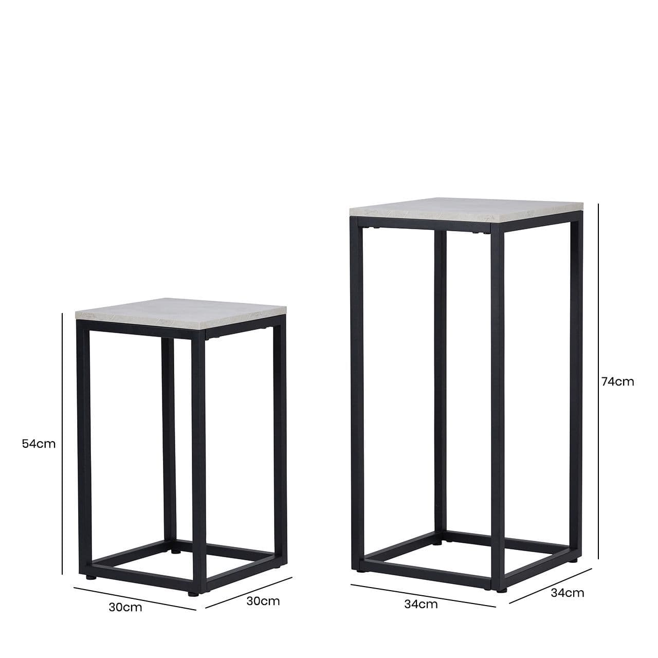 Strikingly simple yet beautifully versatile, this set of two plant stands features a black metal frame design, along with a grey wooden, faux concrete finish top which can also be used as display/occasional tables. Perfect to highlight any empty corner for any modern living area