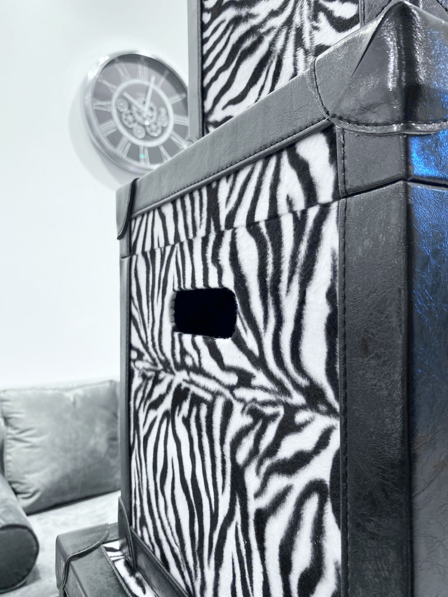 Store your household items in style with this glamorous set of storage box's. Featuring a rich, zebra print, with complementary black straps for an extra touch of class and security. Awe your guests with this practical yet contemporary piece of decor for any modern home