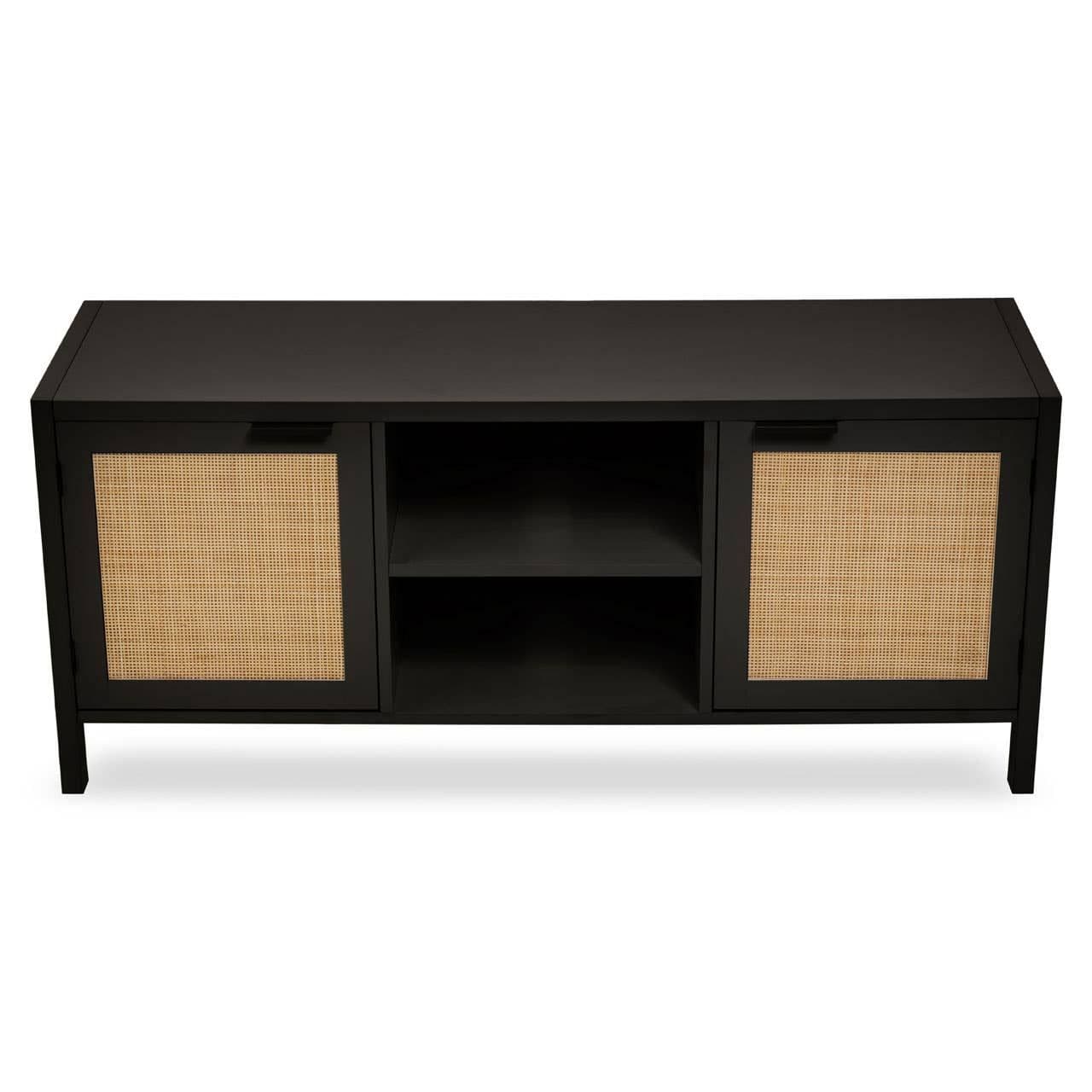 Bring both elegance and rustic charm into your living room with the Sherman Black Wood Media Unit. Designed with a black wood body and natural rattan detailing, this media unit strikes the perfect balance between modern style and earthy warmth. It offers ample storage, combining sleek design with functional features for your home entertainment needs.