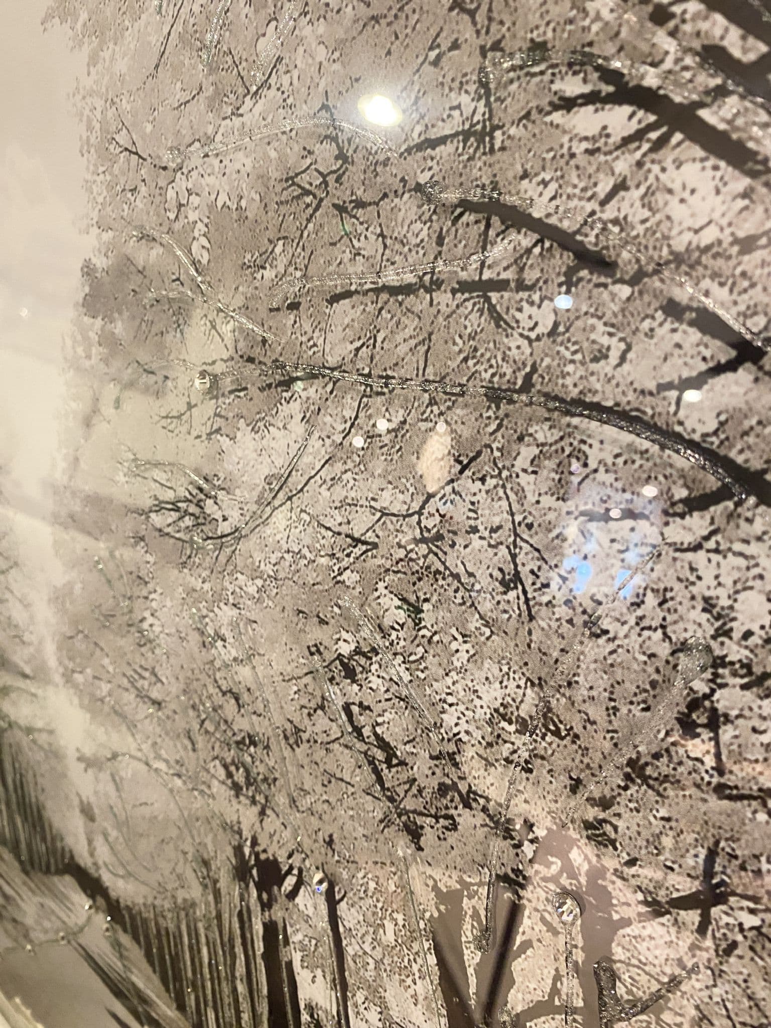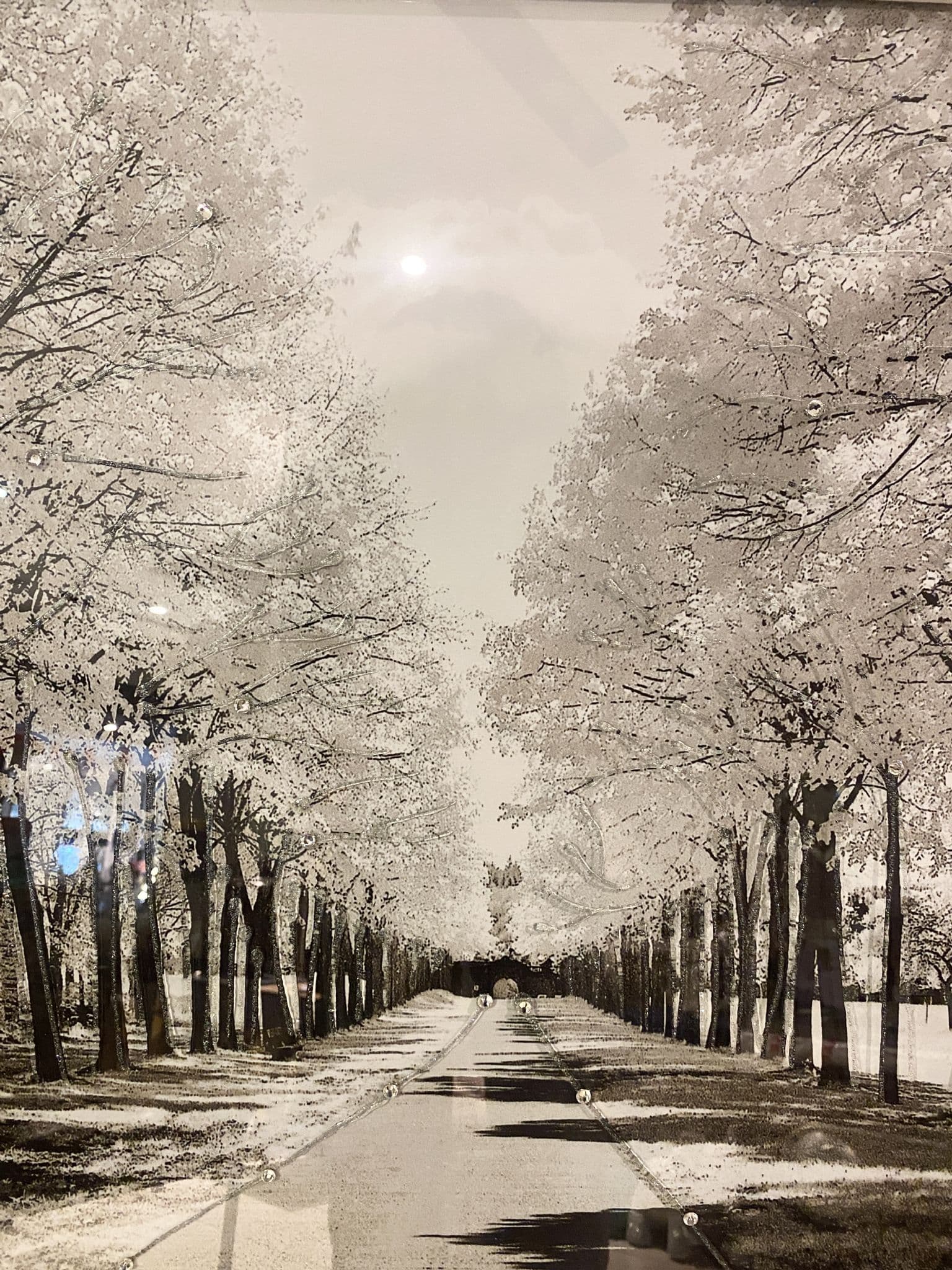 This picture features 'Silver Trees Walk Way', exhibiting a rich design with liquid details around the picture, creating a smart look for your home. Finished with a White Step Frame.