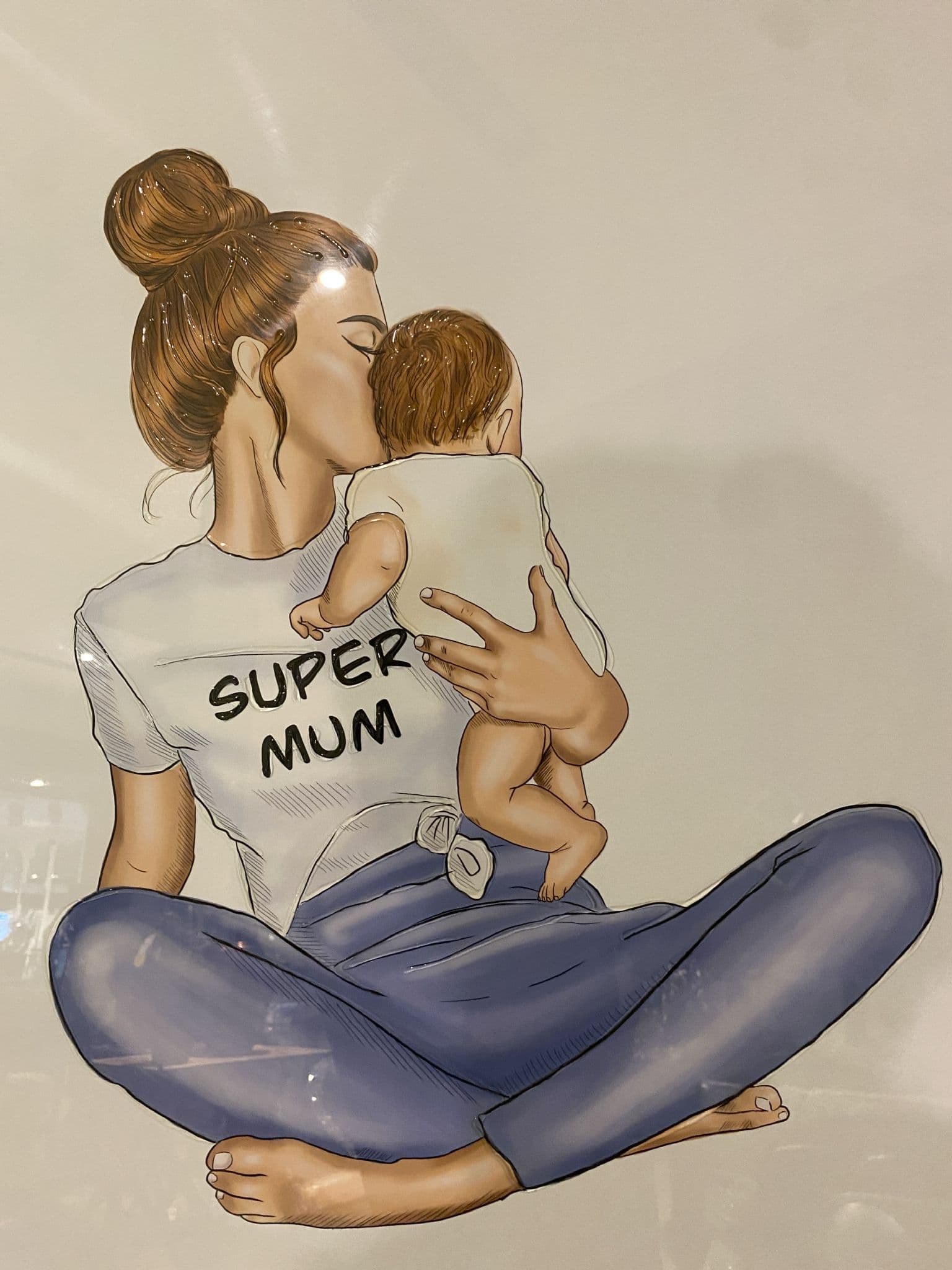 This picture features 'Supermum Blue', exhibiting a rich design with liquid details around the picture, creating a smart look for your home. Finished with a Mirror Frame.