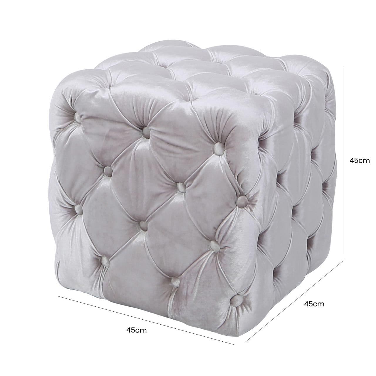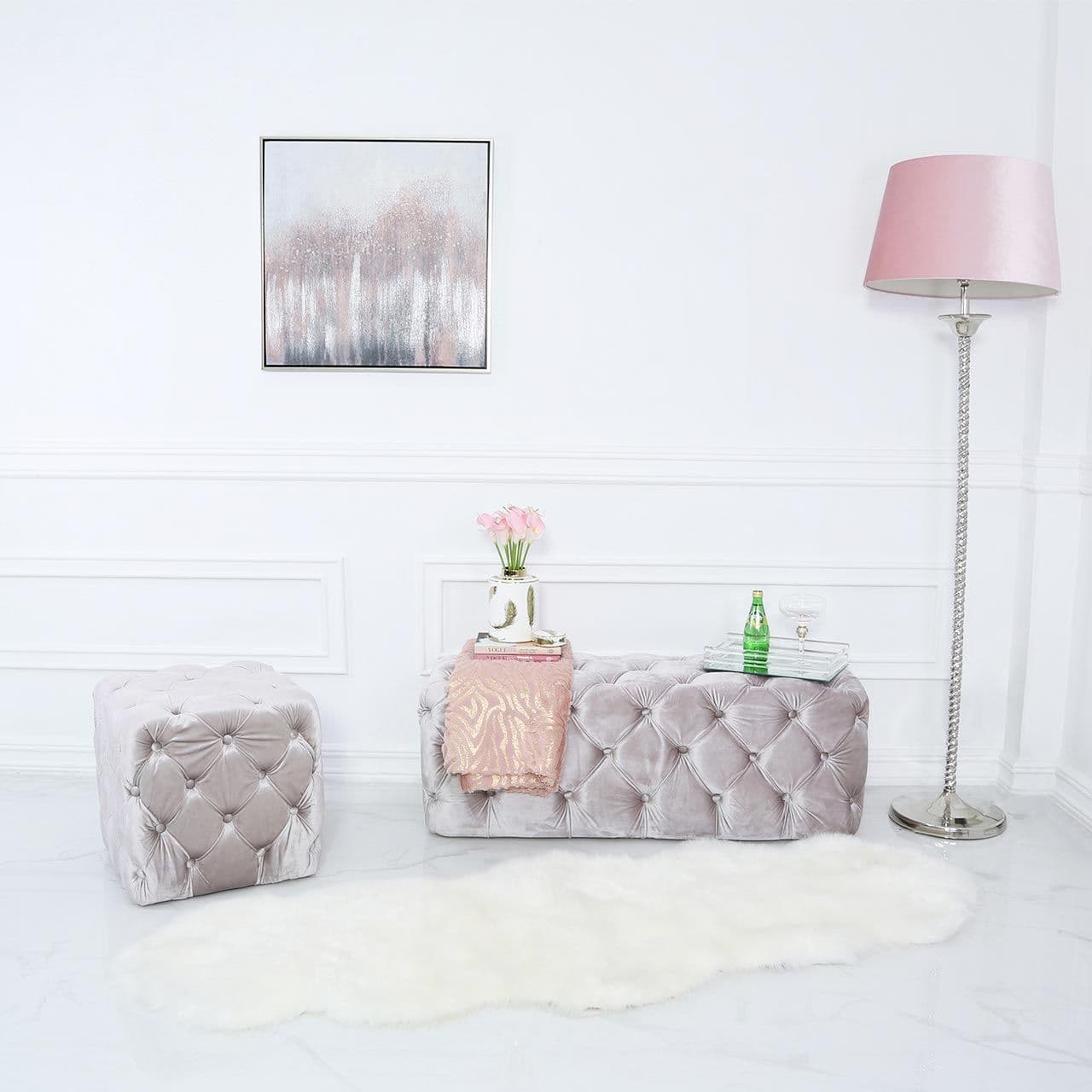Elevate your modern interior with this elegant Bella Tufted Stool. With its blush tone, soft velvet fabric and embedded tufted buttons, complementing any style of modern interior. Perfect for a foot-rest and even temporarily placing items on