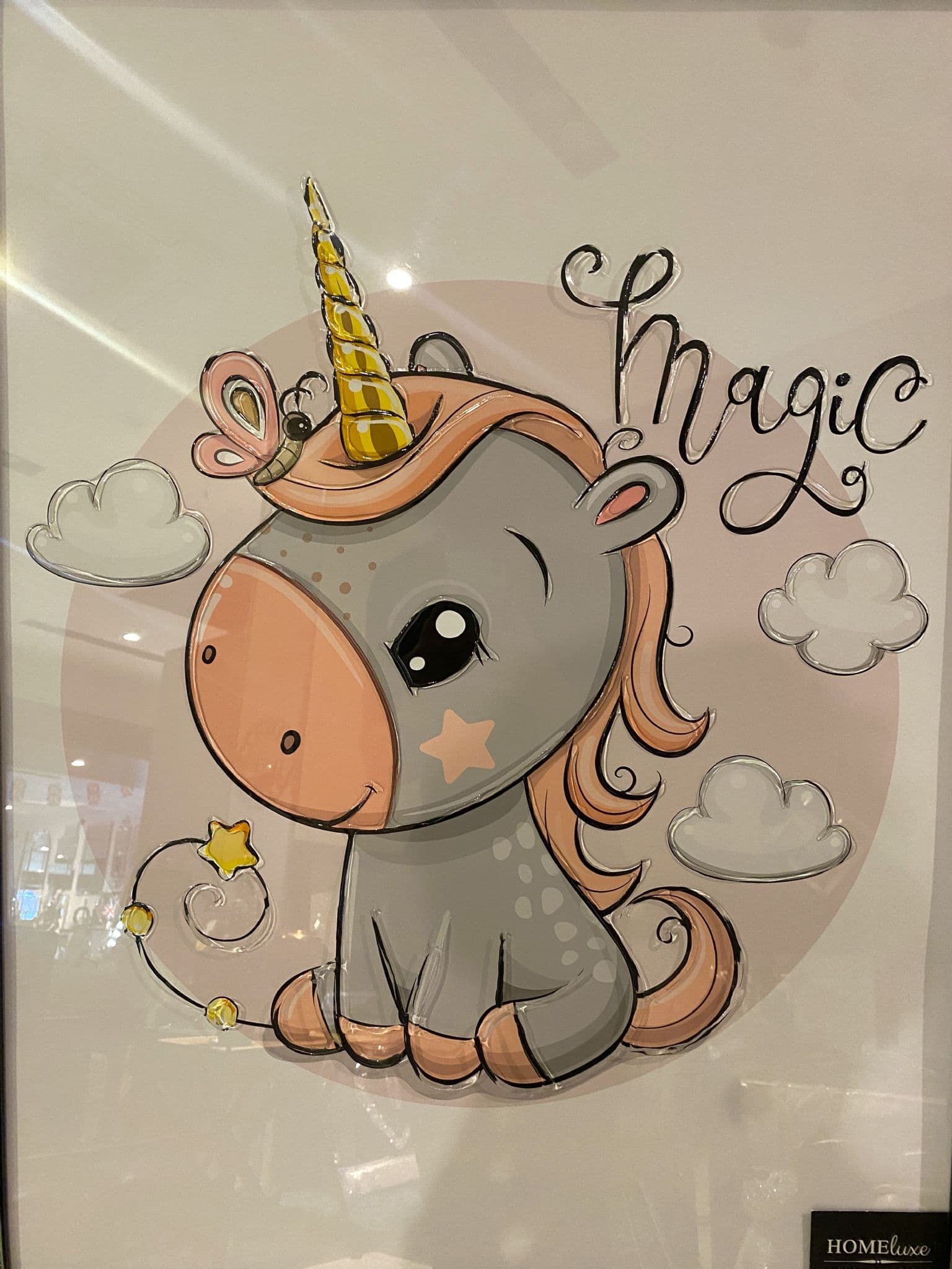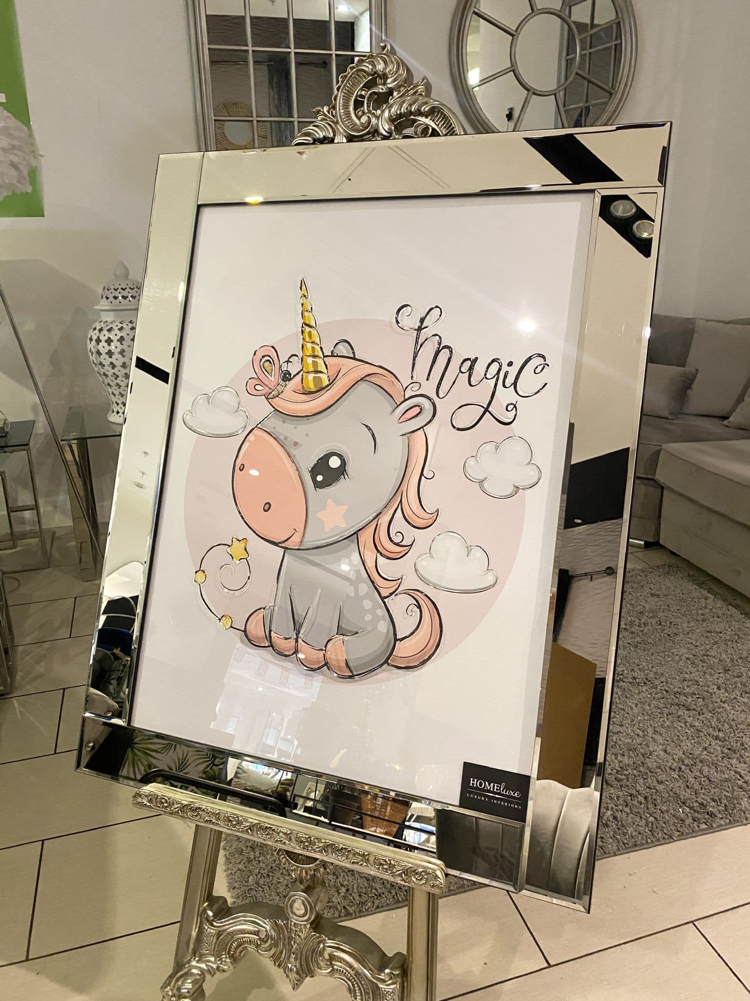 This picture features 'Unicorn Magic', exhibiting a rich design with liquid details around the picture, creating a smart look for your home. Finished with Mirror Frame.
