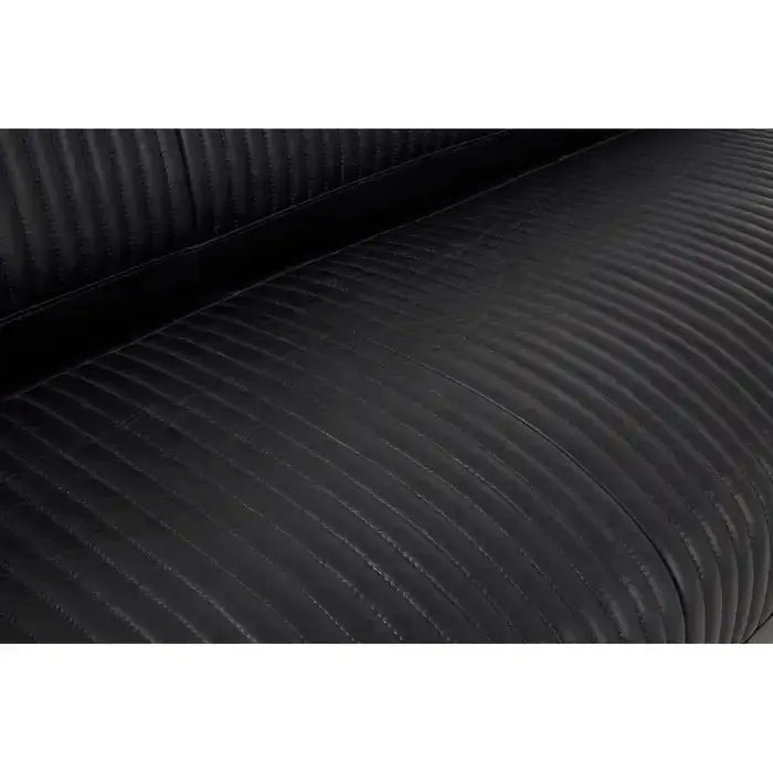 Boasting channel tufted leather upholstery and sleek metal arms, this three-seater Victor sofa emits a gently vintage vibe. Leather and metal stud details provide depth and an elegant industrial appearance.
